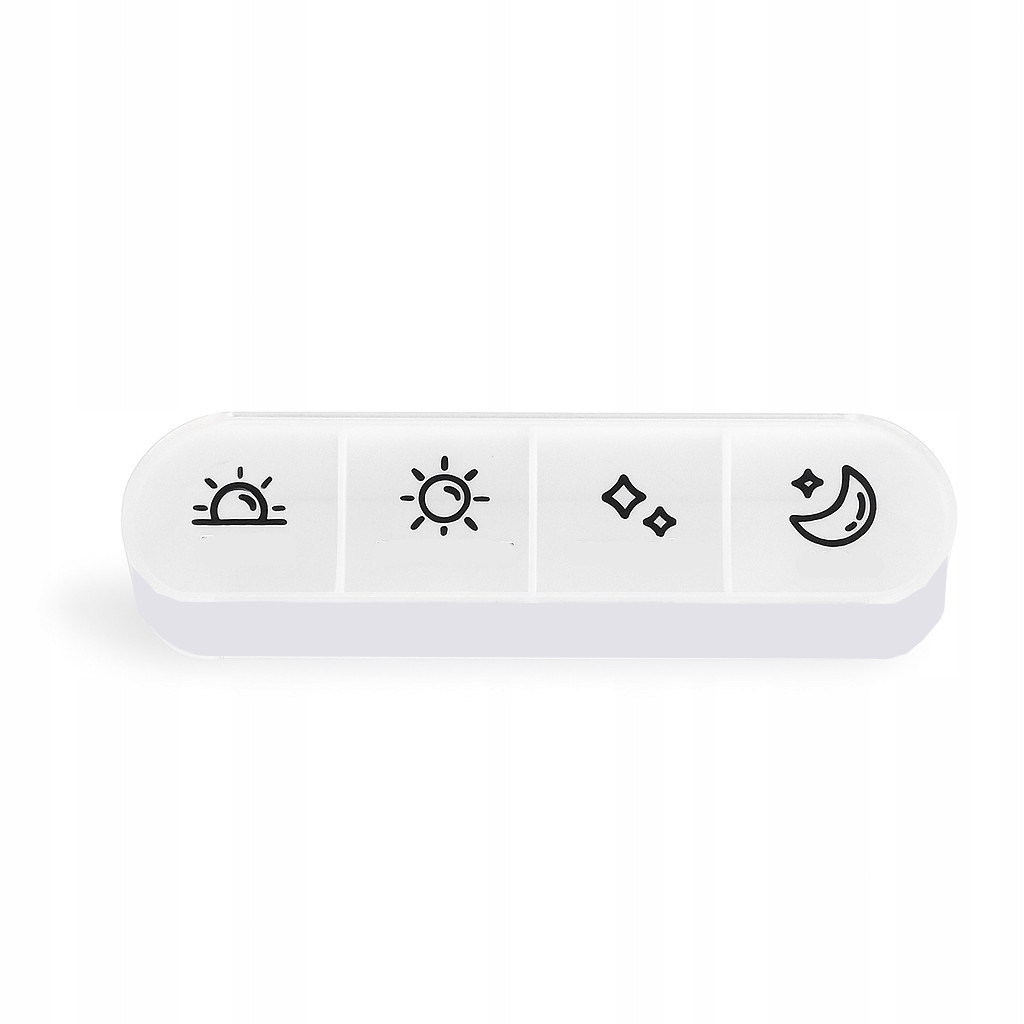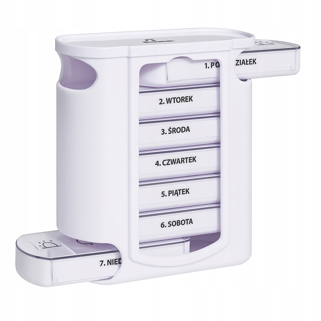 Bardzo praktyczny organizer na lekarstwa, pudełko na leki na cały tydzień, które pozwoli organizować leki na cały tydzień z podziałem na cztery pory dnia. Wszystko umieszczone w praktycznej konstrukcji z której wysuwamy poszczególny dzień, dzięki czemu możemy dokładnie określić kiedy powinniśmy przyjąć leki.