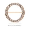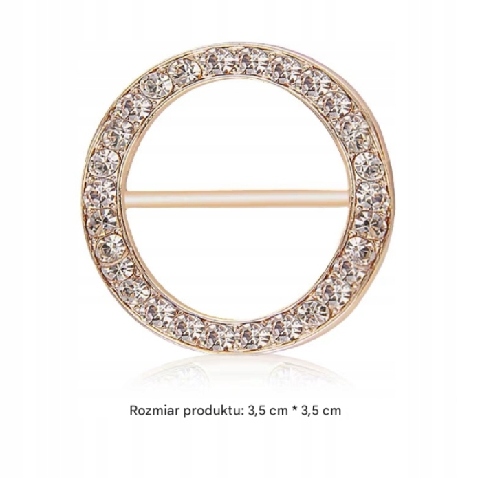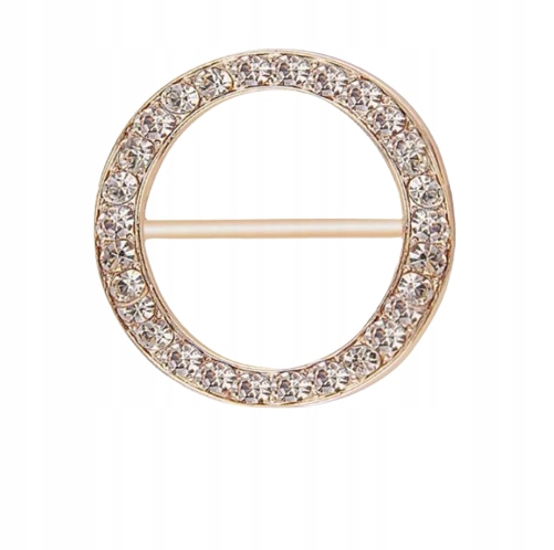 Uniwersalna klamra do szalika, koszulki lub paska to praktyczny i stylowy dodatek, który doskonale łączy funkcjonalność z elegancją. Wykonana w kolorze złotym, klamra ma okrągły kształt, a jej subtelny połysk wzbogacony został przez delikatne cekiny umieszczone wzdłuż obrysu. Dzięki temu zyskuje ona wyjątkowy charakter, dodając wyrafinowania każdej stylizacji.