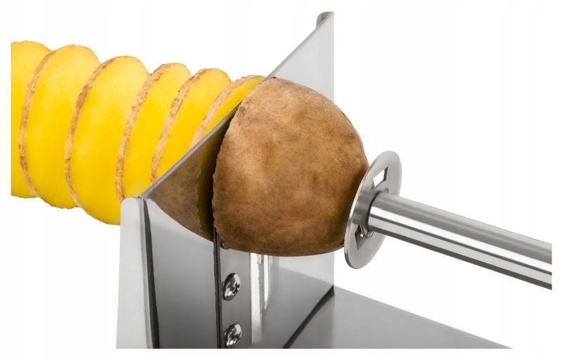 Maszynka przeznaczona jest do przygotowania zakręconych ziemniaków, znanych na całym świecie jako spring potato lub twisted potato. Maszyna do zakręconego ziemniaka idealnie sprawdzi do restauracji, baru, kina, foodtrucka, podczas imprezy plenerowej, a także w domu. Jest to również ciekawa propozycja również dla firm, które chcą powiększyć swój asortyment. Niewielkie wymiary urządzenia pozwalają na postawienie go w dowolnym miejscu.