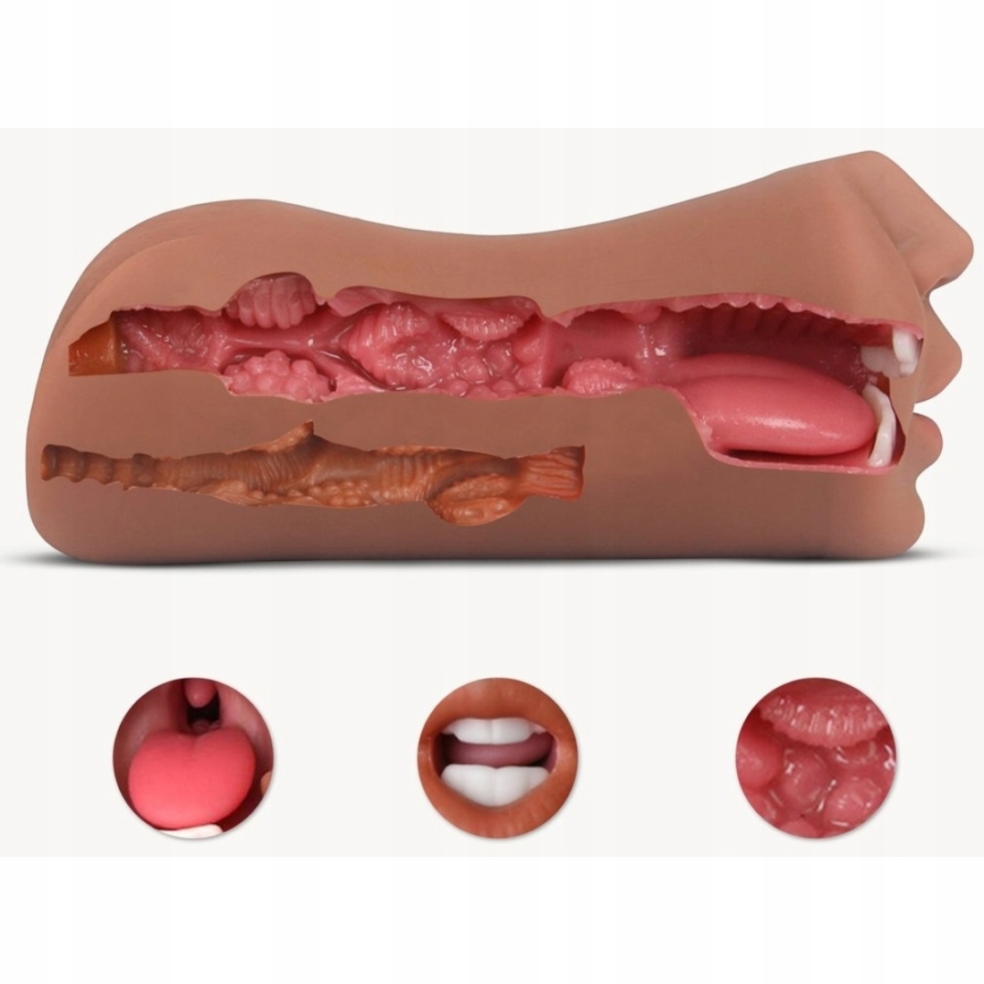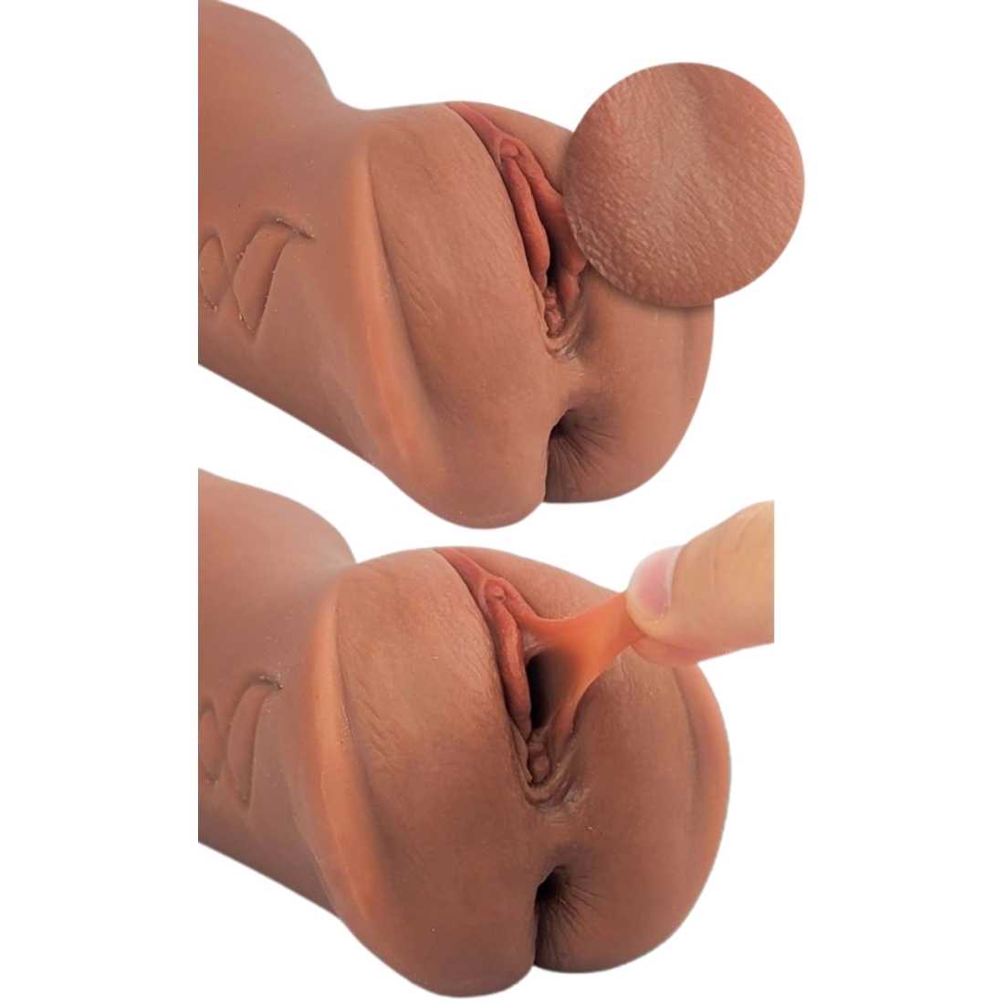 Z drugiej strony znajdziesz doskonale odwzorowany anus i ciasną, namiętną pochwę, wyposażone w wewnętrzne wypustki, które masują Cię przy każdym ruchu, dostarczając niewyobrażalnej przyjemności. Poczuj, jak wypustki pieści Twój członek, gdy zanurzasz się głęboko, doświadczając niepowtarzalnych wrażeń, które sprawią, że będziesz chciał wracać po więcej.