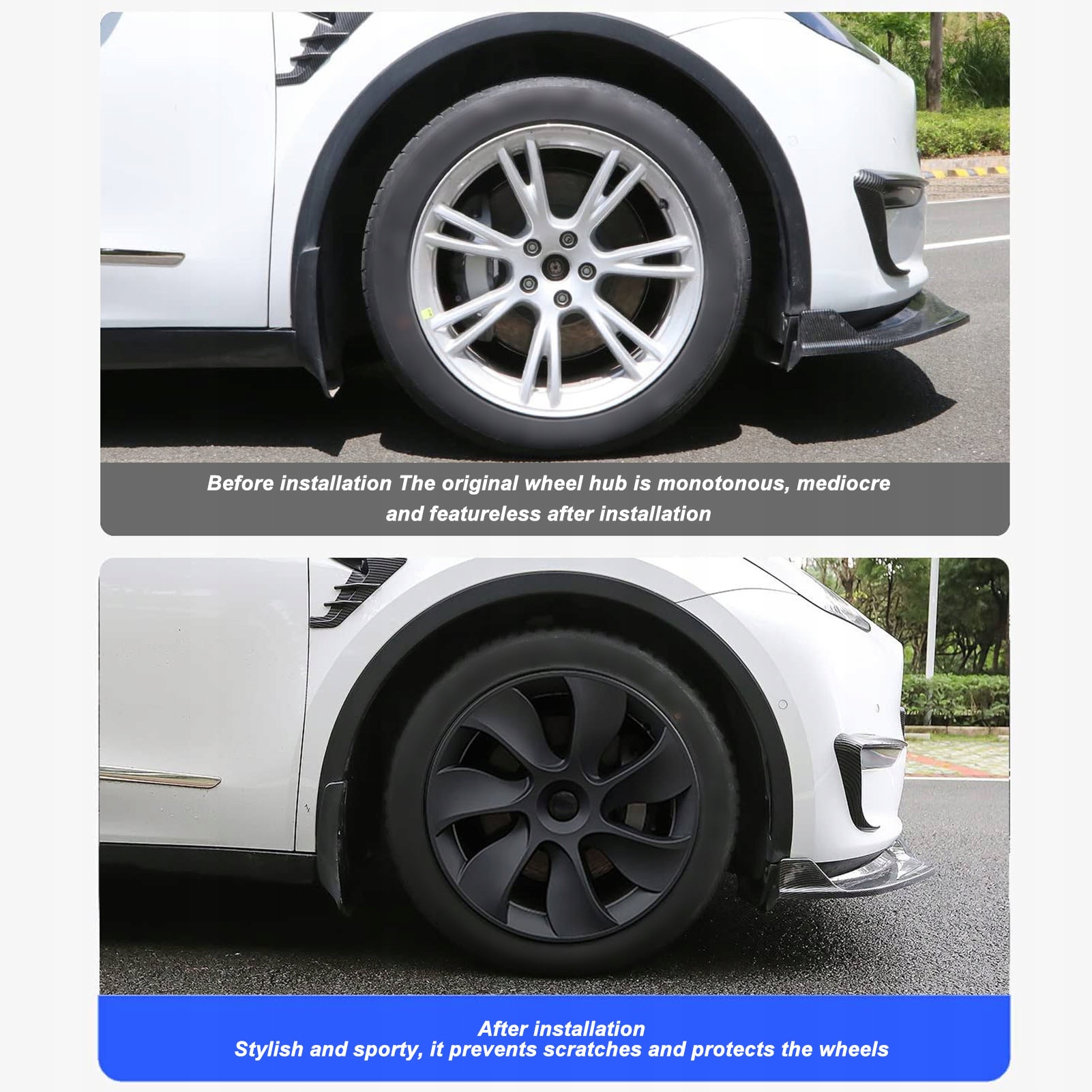 1. Montaż: Zaprojektowane specjalnie jako zamienniki Tesli Model Y, kołpaki idealnie pasują do siebie, poprawiając ogólny wygląd pojazdu.