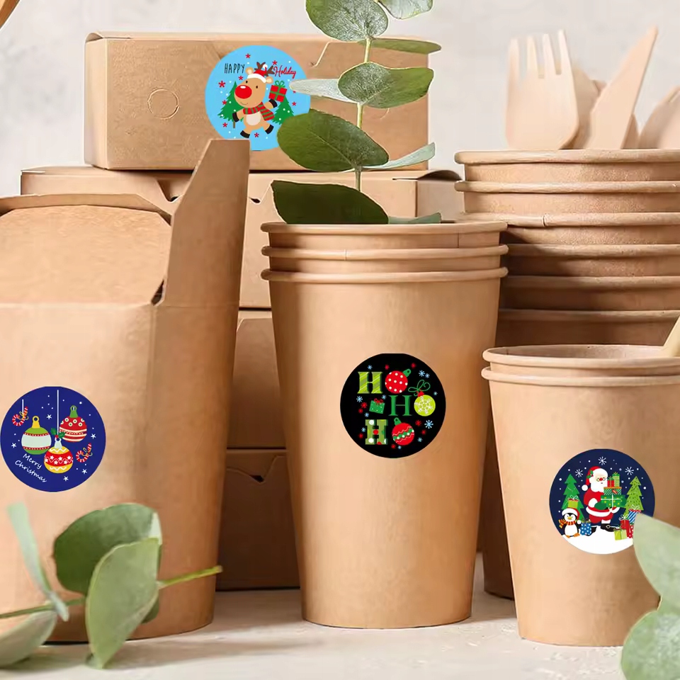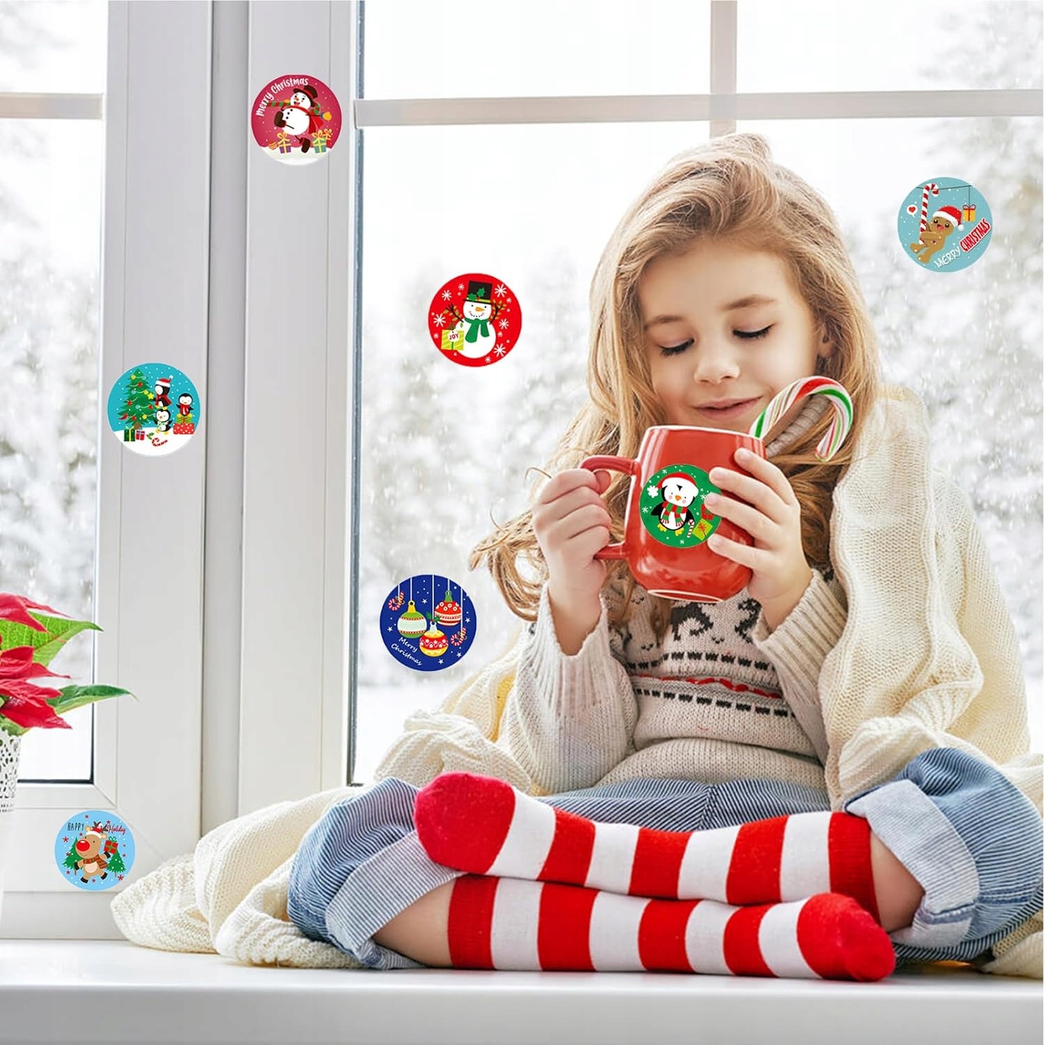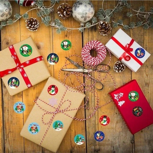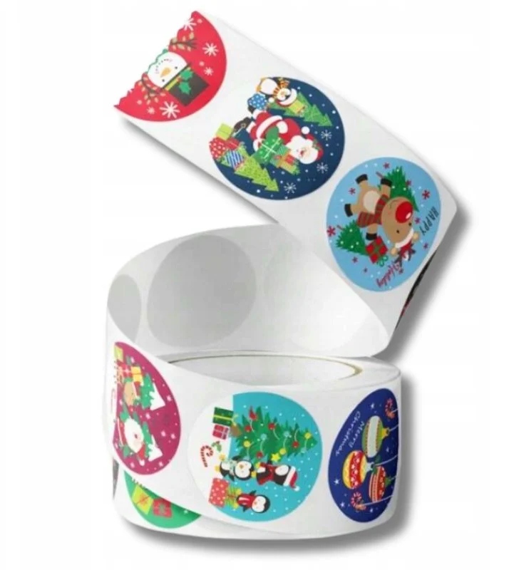 NAKLEJKI ŚWIĄTECZNE NA PREZENTY PACZKI OZDOBNE ŚWIĘTA OKRĄGŁE ROLKA 500szt