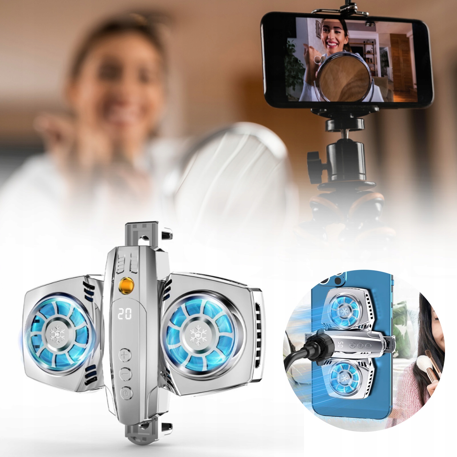 4. Odpowiednie dla wielu scen: dla graczy na telefonach komórkowych i vlogerów, którzy używają telefonu do przesyłania strumieniowego wideo na żywo. Wsparcie ładowania telefonu komórkowego podczas jego używania.
