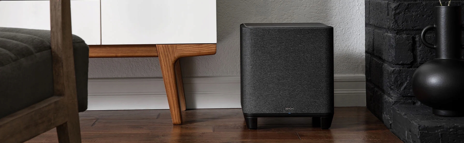 Dzięki przemyślanej konstrukcji Subwoofer Denon Home jest wystarczająco kompaktowy, aby zniknąć w Twoim pokoju, ale nie będziesz w stanie przeoczyć wpływu, jaki będzie miał na Twoje wrażenia audio - wizualne.