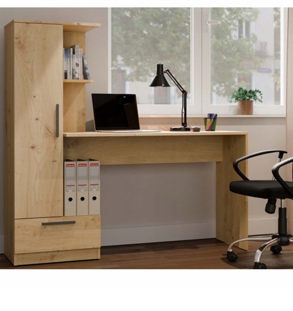 Biurko z regałem COSMO DĄB ARTISAN to funkcjonalny zestaw, który łączy nowoczesny styl z praktycznymi rozwiązaniami do codziennego użytku. Dzięki kompaktowej konstrukcji zestaw sprawdzi się w pokoju młodzieżowym, domowym biurze czy pracowni.