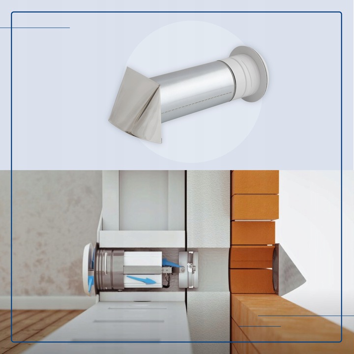 Od strony wnętrza budynku nawietrzak wyposażony jest w anemostat, posiadający warstwę izolacji, która zapobiega tworzeniu się skroplin w okresie zimowym i tłumi hałas, a także pozwala na precyzyjną regulację natężenia przepływu powietrza przez użytkownika.