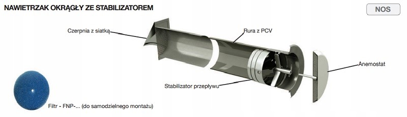 Do każdego nawietrzaka dołączany jest filtr powietrza (osobno, do samodzielnego montażu). Montaż filtra zapewnia skuteczne wychwytywanie kurzu i innych zanieczyszczeń przenoszone przez powietrze.