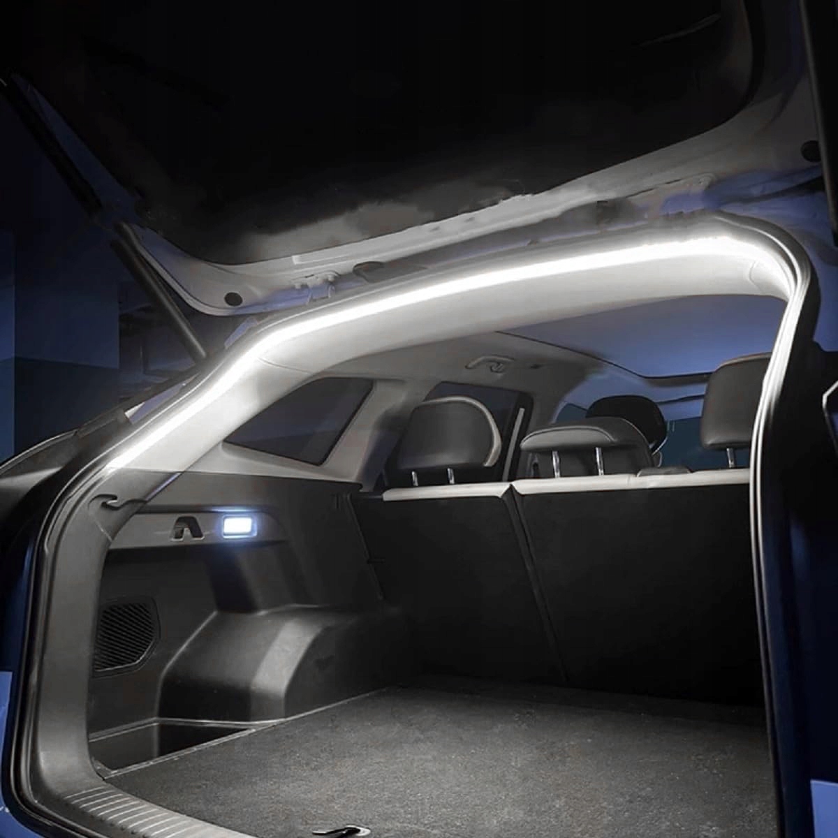 Ultrajasna taśma oświetleniowa, mocne oświetlenie, stabilne, stałe, chłodne, białe światło, równomierny strumień świetlny, przyjemny i naturalny efekt świetlny, który poprawia wygląd bagażnika, jednocześnie zwiększając oświetlenie i ułatwiając znalezienie przedmiotów.