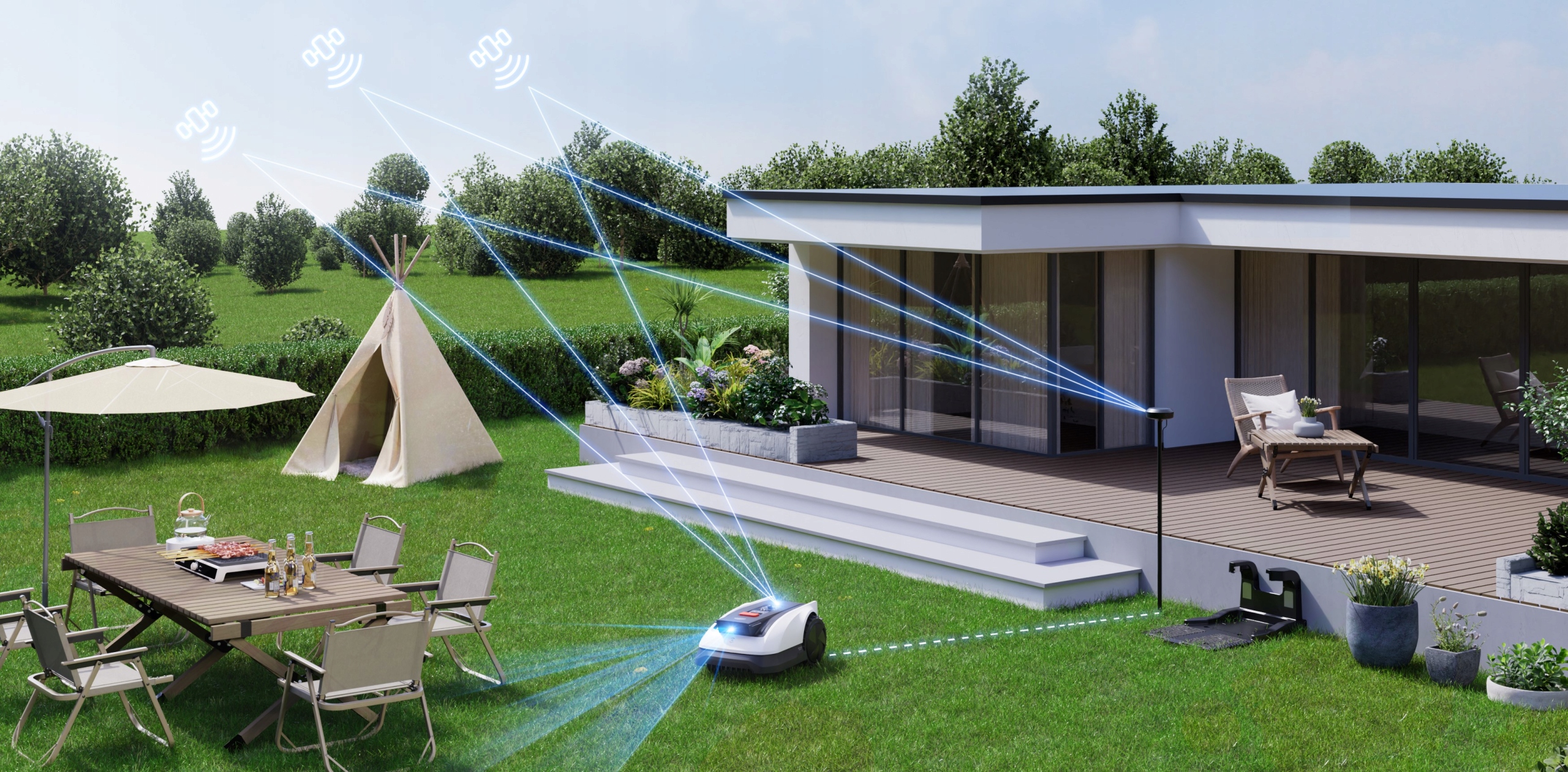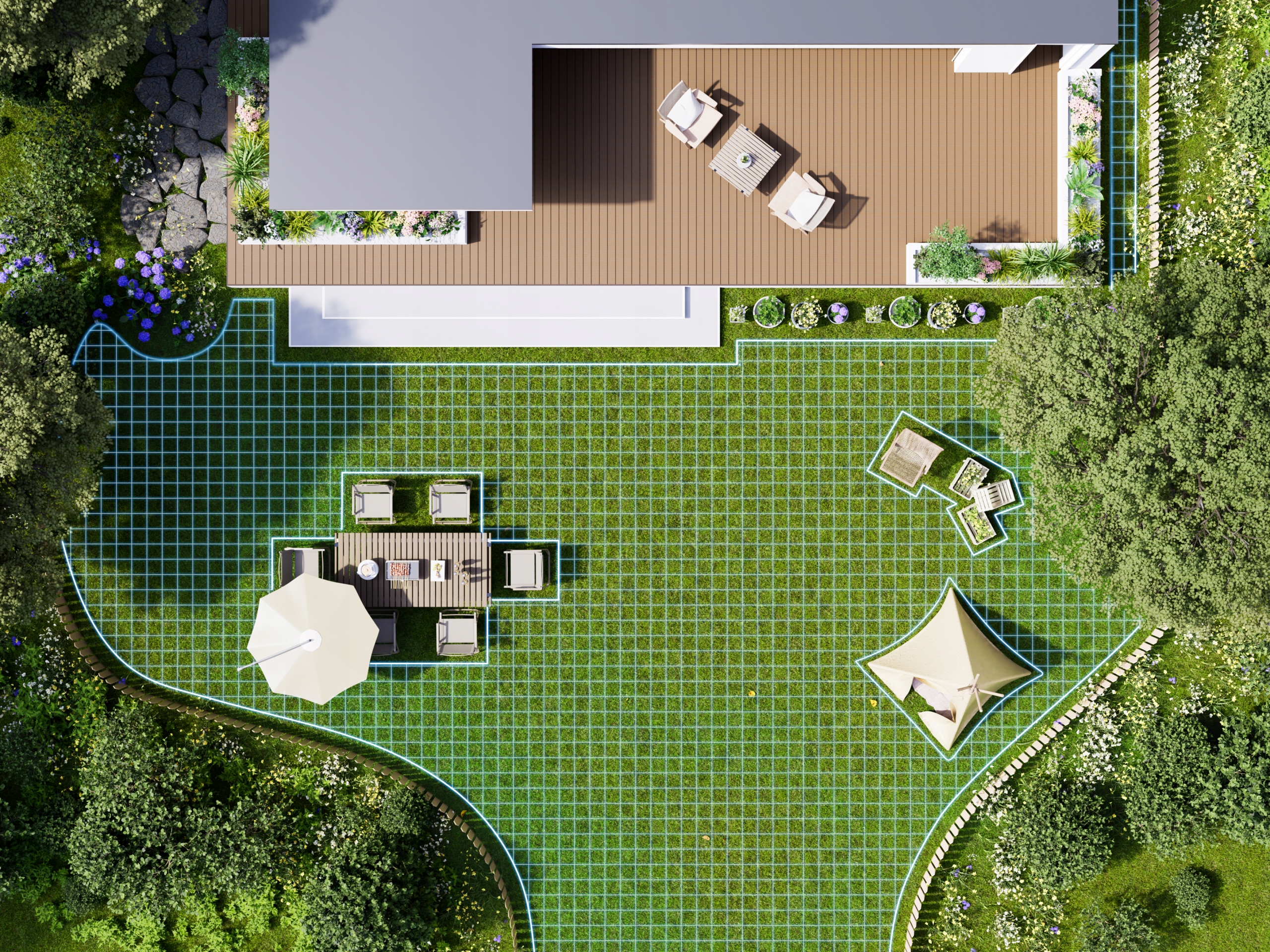 Roboty mogą płynnie poruszać się po każdym zakątku ogrodu, zapewniając dokładną pielęgnację trawy.