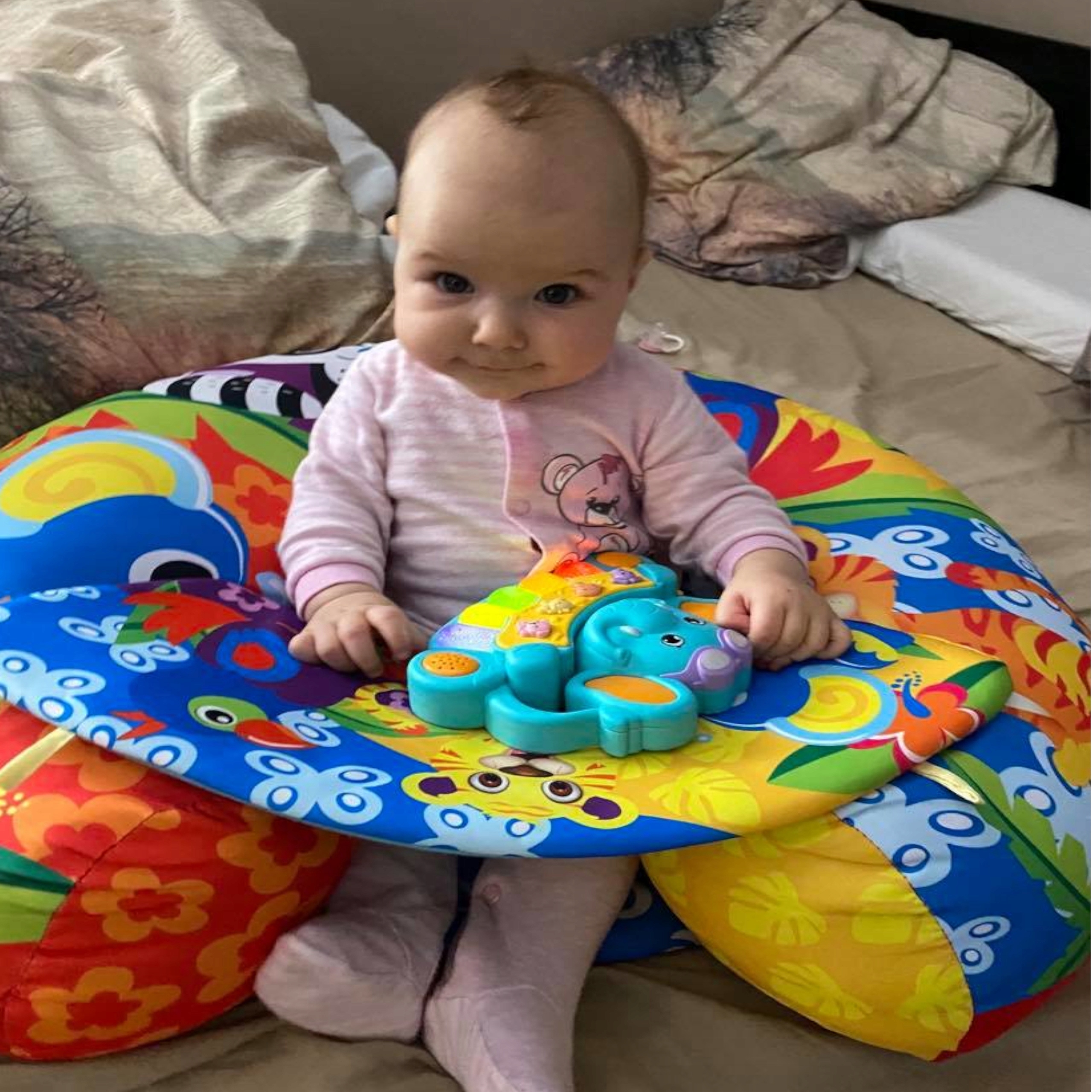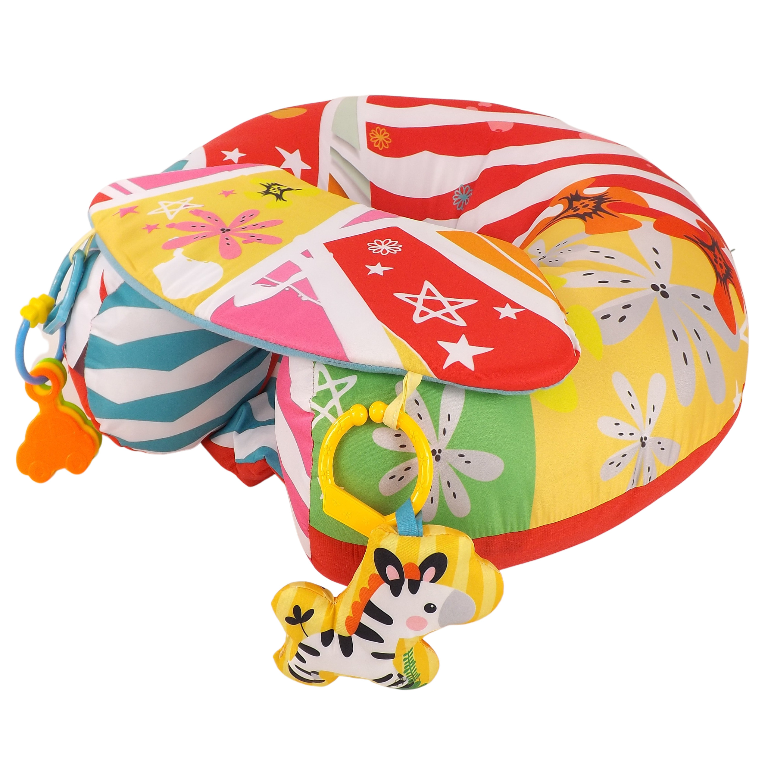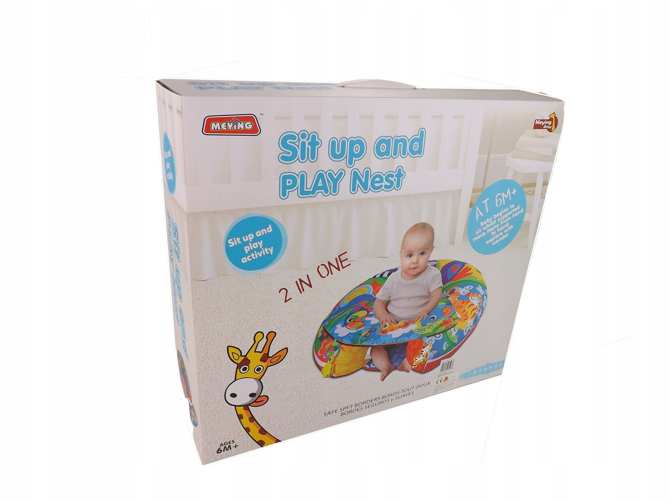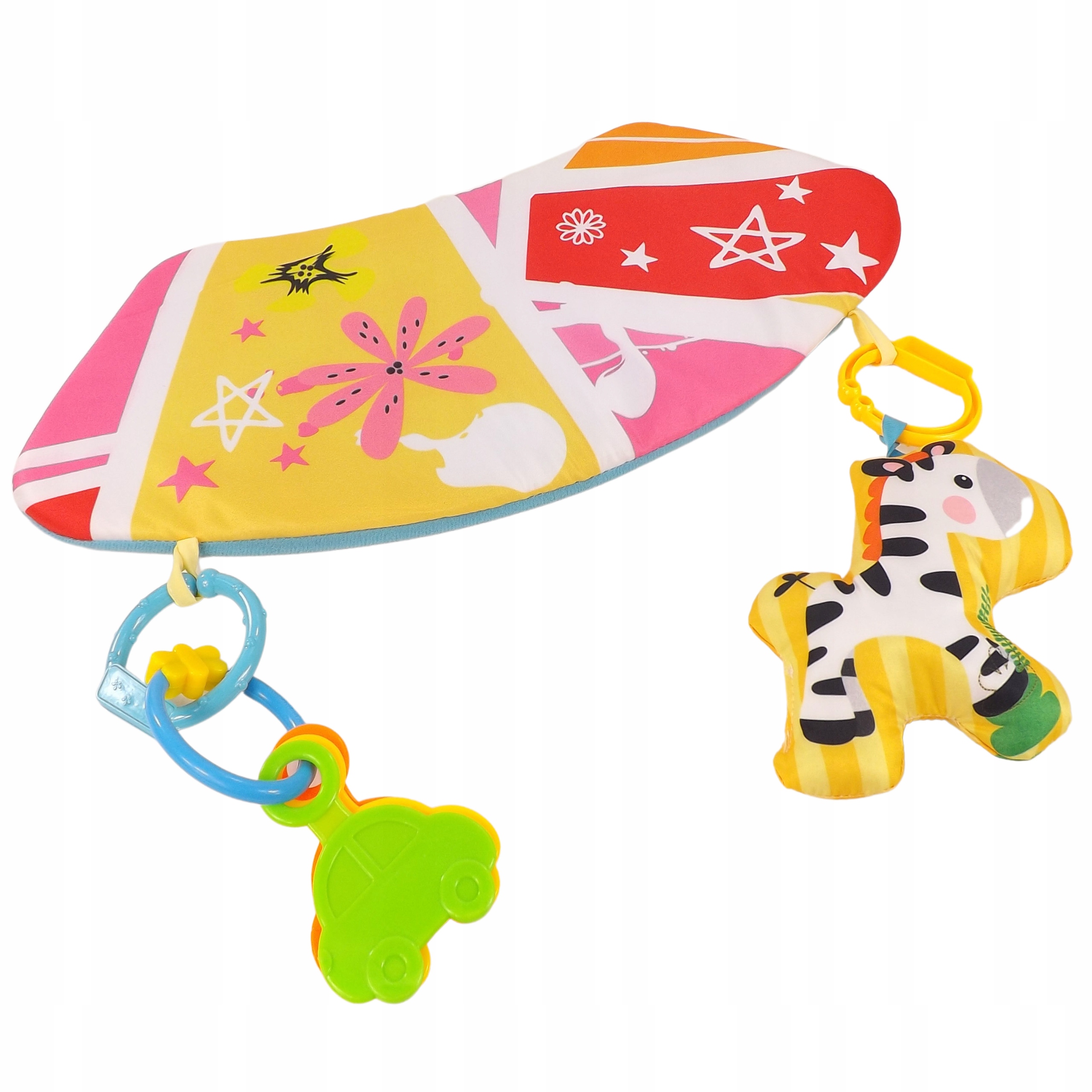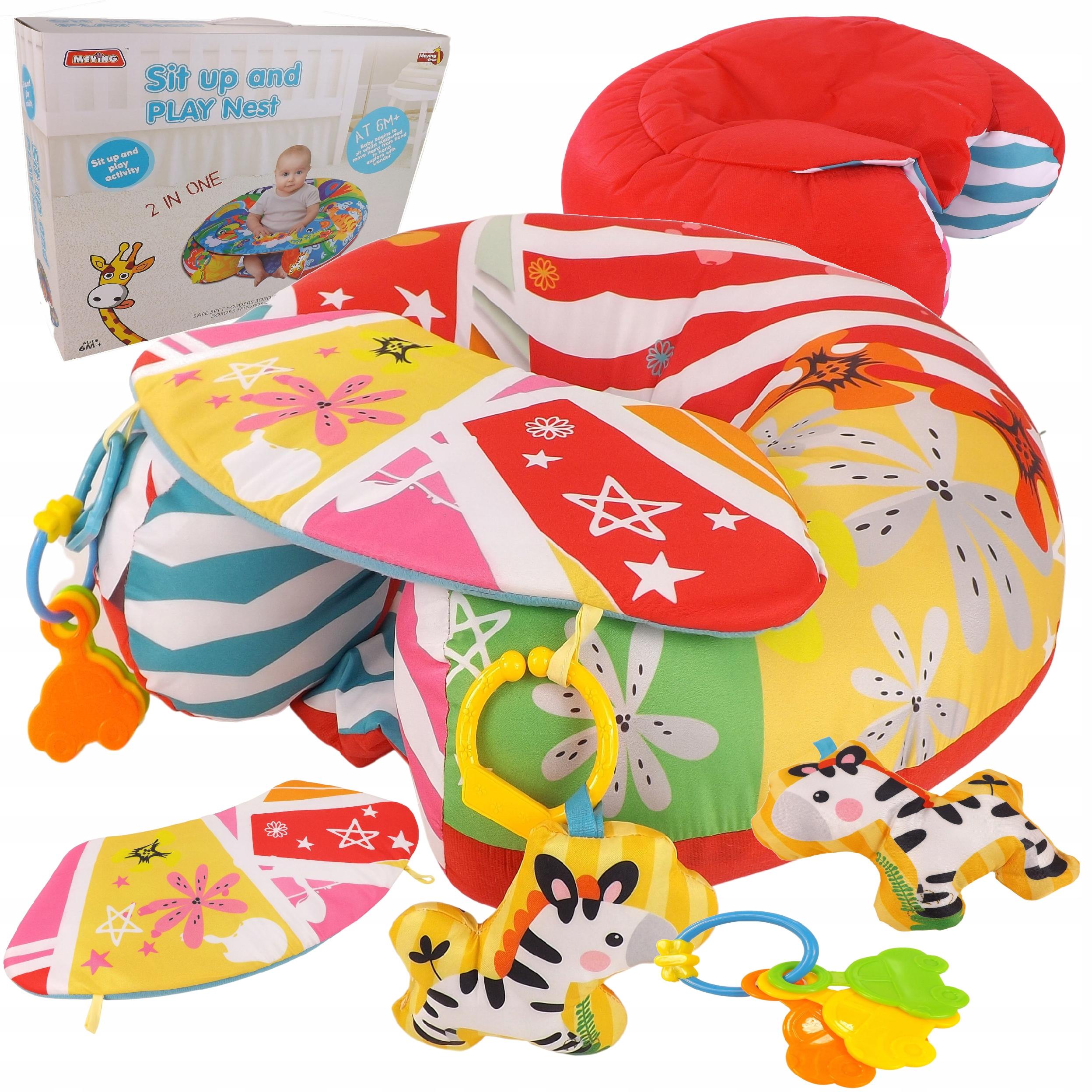 Wymiary poduszki to 56 x 46 x 18 cm, a sama konstrukcja zapewnia mocną i solidną podstawę. Stolik mocowany na rzepy oraz dołączone zawieszki – zebra i autko – sprawią, że zabawa w tym bezpiecznym miejscu będzie niezwykle atrakcyjna. Poduszka jest zapakowana w eleganckie pudełko z rączką, co czyni ją idealnym prezentem dla świeżo upieczonych rodziców.