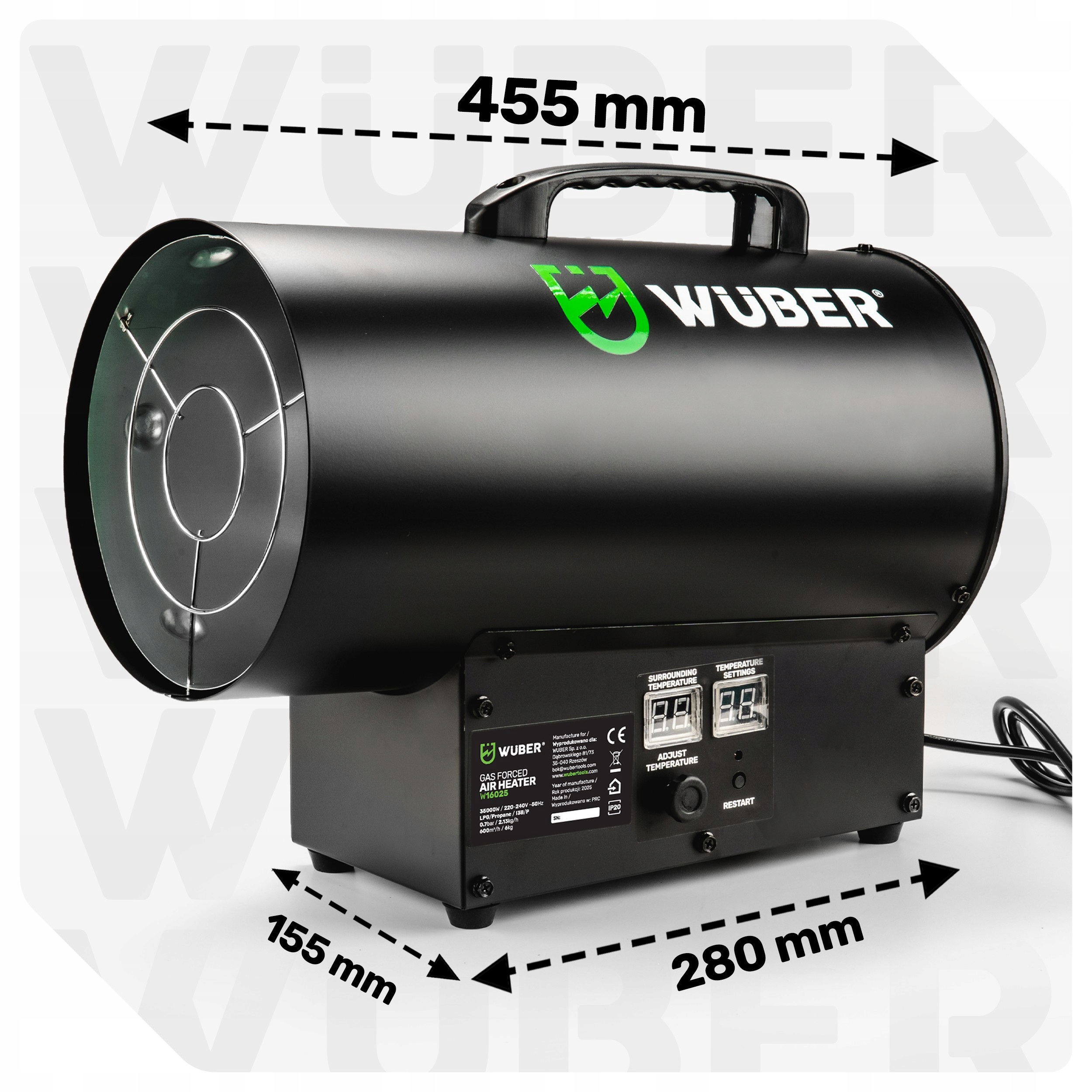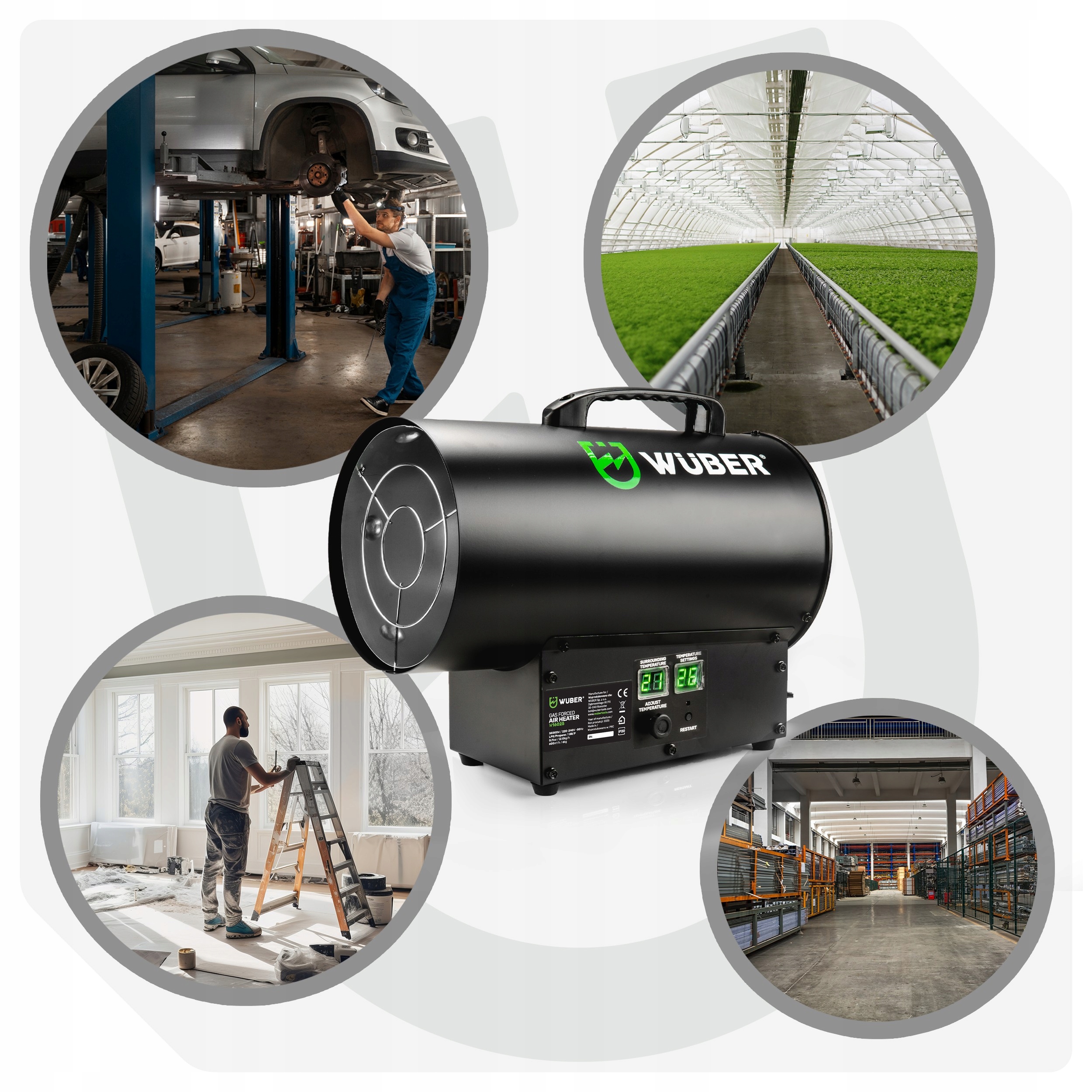Otrzymujesz możliwość wyboru zakresu spalania - 0,85-2,13 kg gazu na godzinę dzięki funkcji regulacji temperatury, to sprawia, że mocna nagrzewnica gazowa WUBER jest wyjątkowo ekonomiczna.