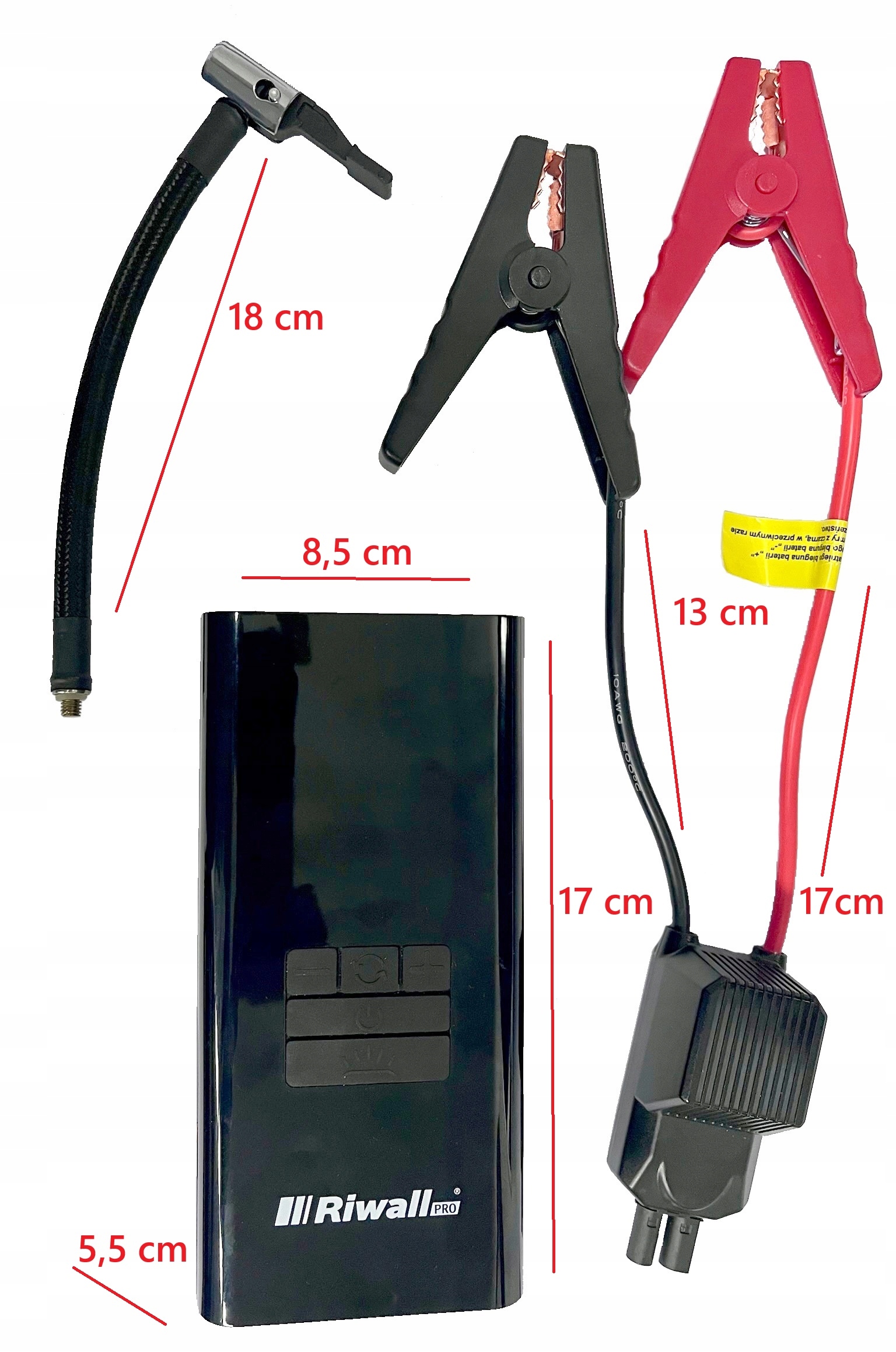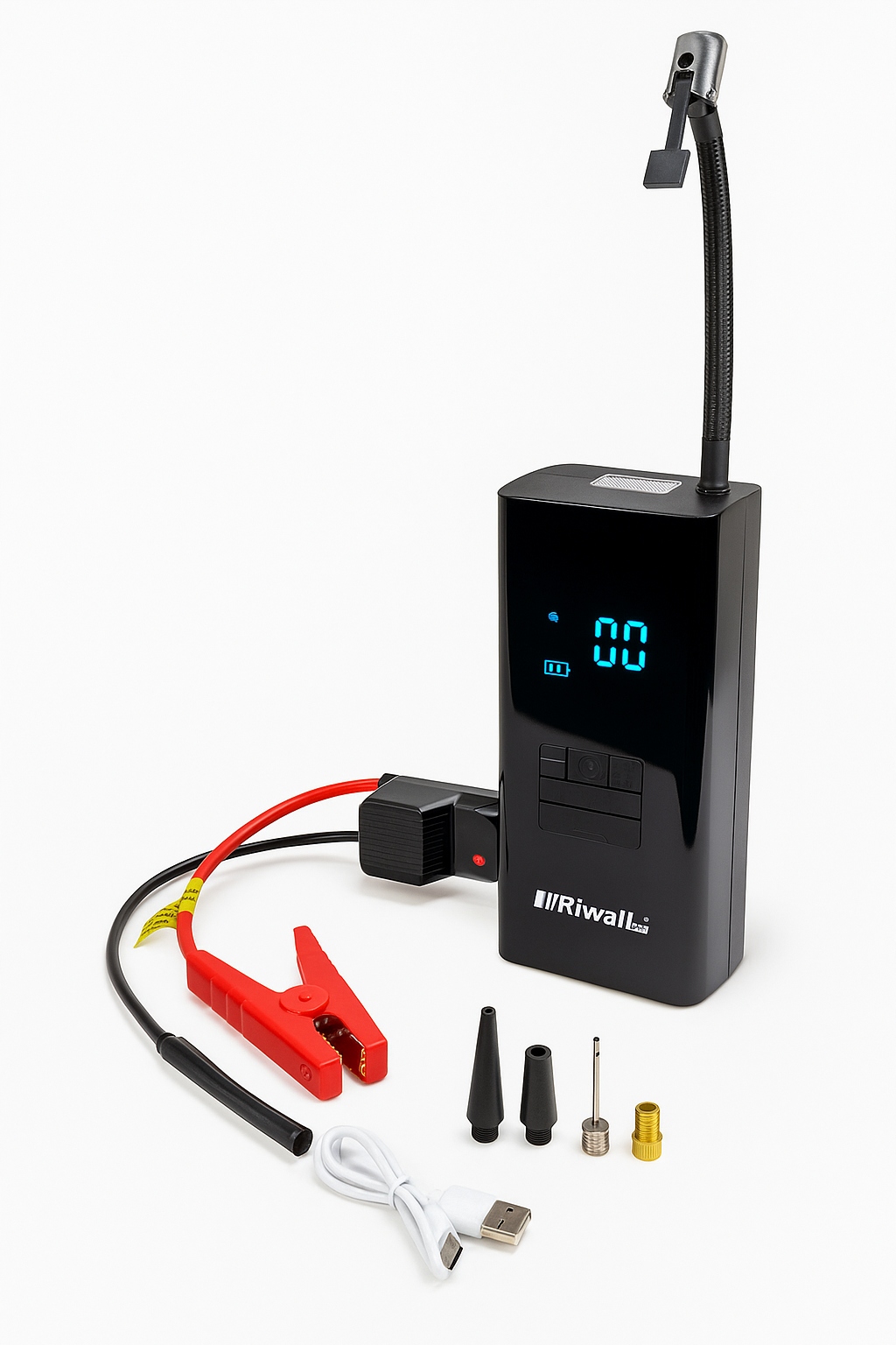 Riwall MaxPower Tool 6w1 to profesjonalne i kompaktowe urządzenie wielofunkcyjne, które łączy moc rozruchu, funkcję kompresora, latarkę LED, tryb SOS, stroboskop oraz powerbank – wszystko w jednej, solidnej obudowie.