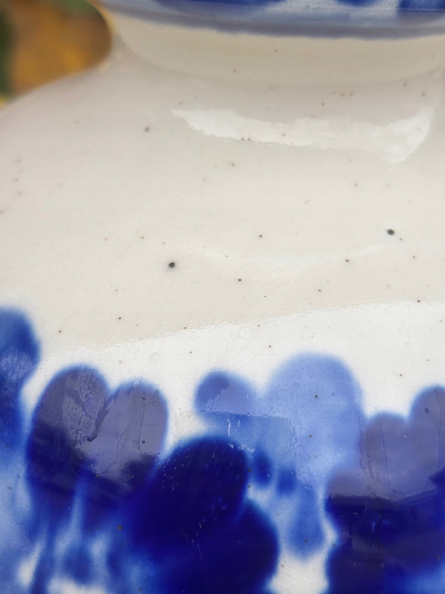 Fajansowy wazon z Włocławka z lat 70/80-tych. Sygnowany. Ręcznie malowany. Wymiary; wys.23 x 16 cm. Z jednej strony wzór malowania trochę rozmazany /zdjęcie nr 4/, niewielki osad wewnątrz na dnie, nieduże ślady użytkowania. Stan wazonu pokazano na zdjęciach.