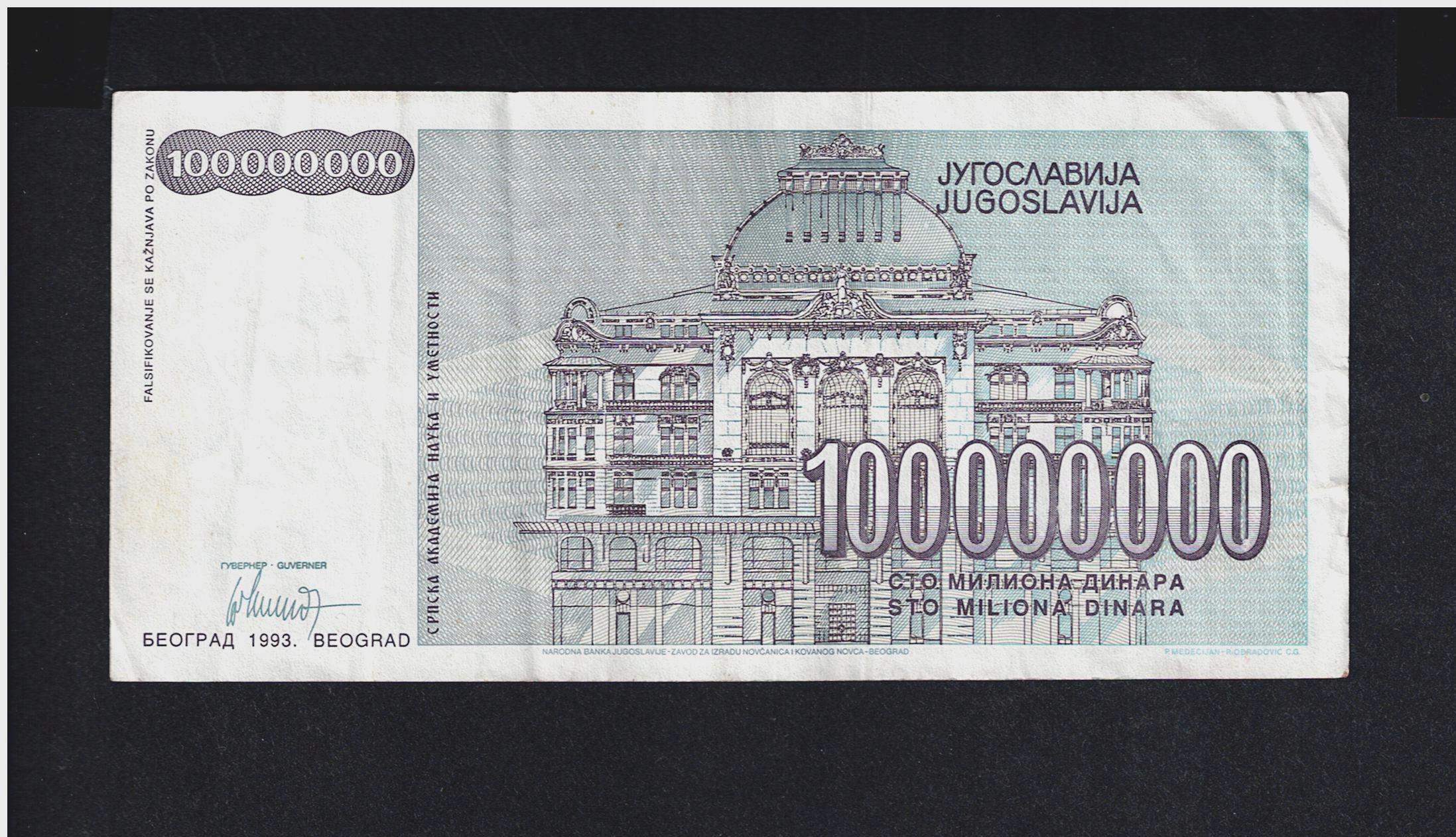 BANKNOT JUGOSŁAWIA - 100000000 DINARÓW - 1993 rok
