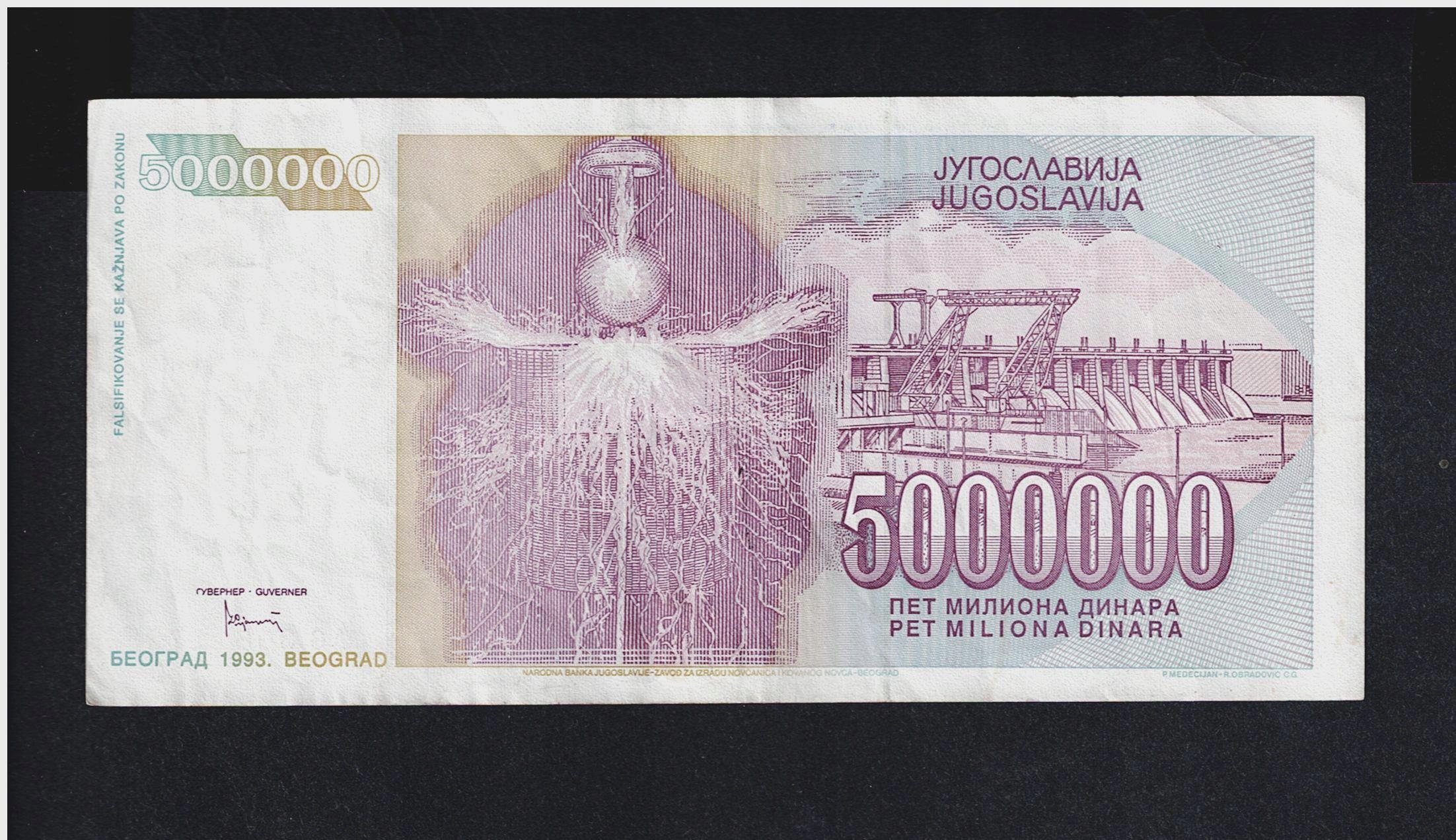 BANKNOT JUGOSŁAWIA - 5000000 DINARÓW - 1993 rok