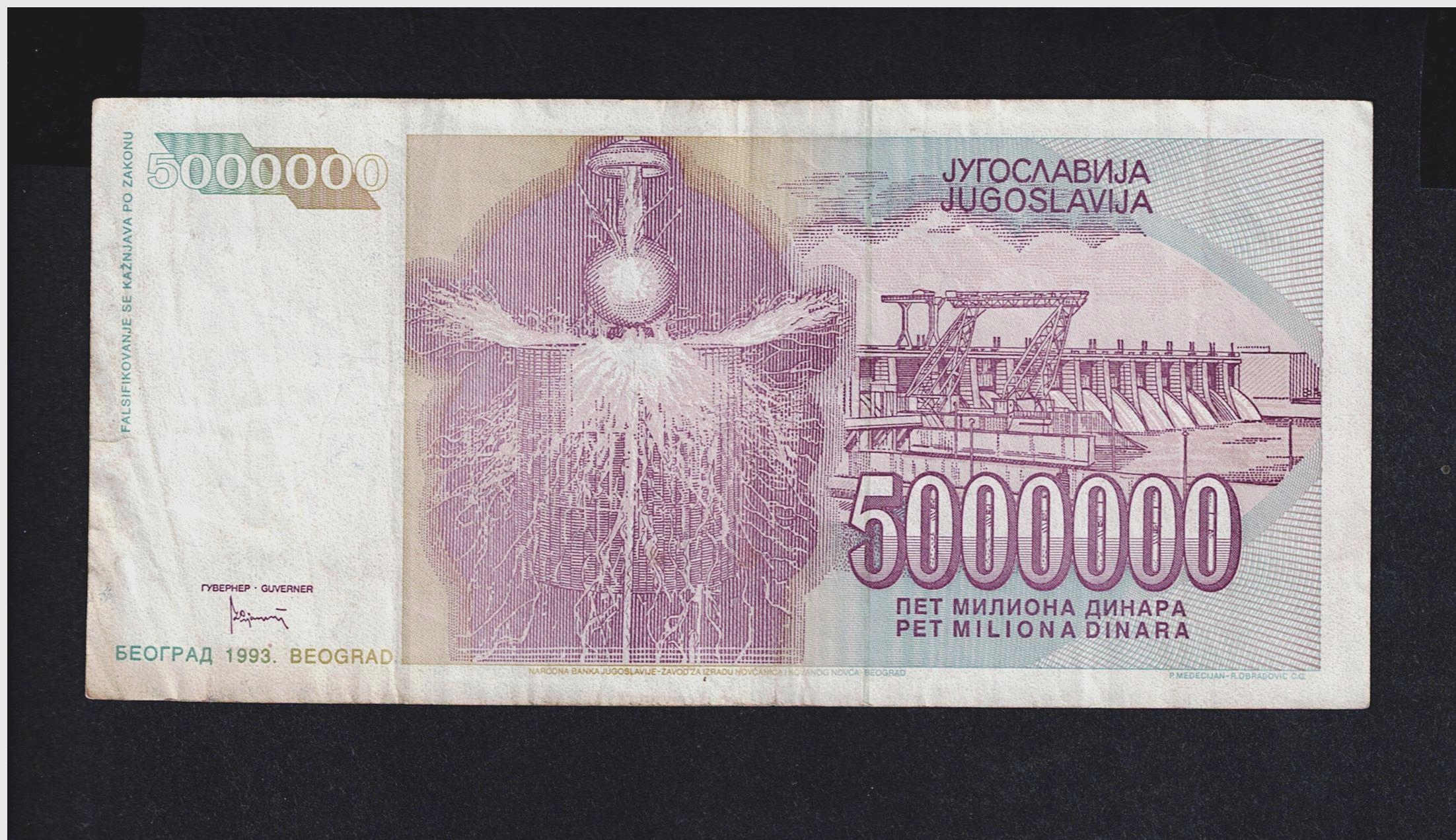 BANKNOT JUGOSŁAWIA - 5000000 DINARÓW - 1993 rok