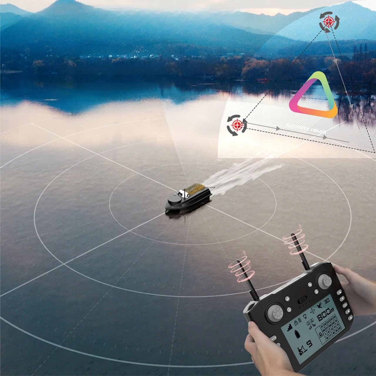 Dzięki wbudowanemu GPS możesz ustawić punkty zanętowe i precyzyjnie wracać do nich podczas połowów. System autopowrotu zapewnia, że łódka bezpiecznie wróci do brzegu, nawet jeśli stracisz sygnał sterowania.