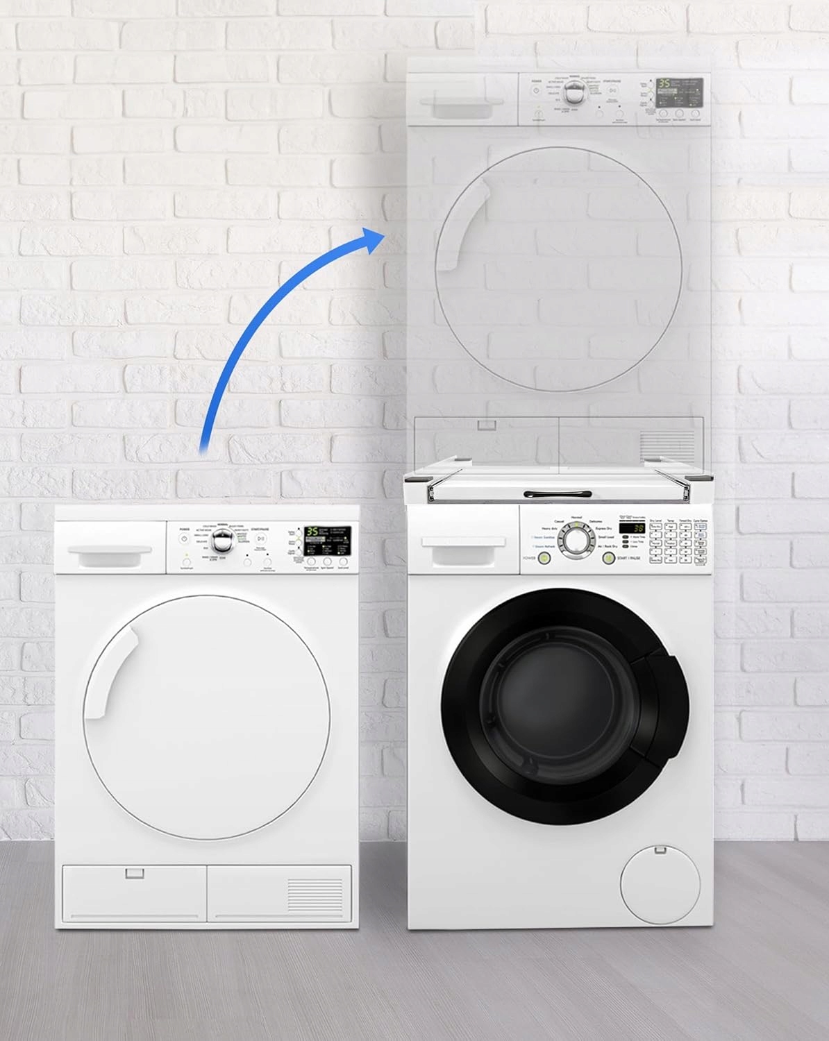📦 【OSZCZĘDNOŚĆ MIEJSCA】: Pozwala na pionowe ustawienie suszarki i pralki, maksymalnie wykorzystując dostępną przestrzeń.