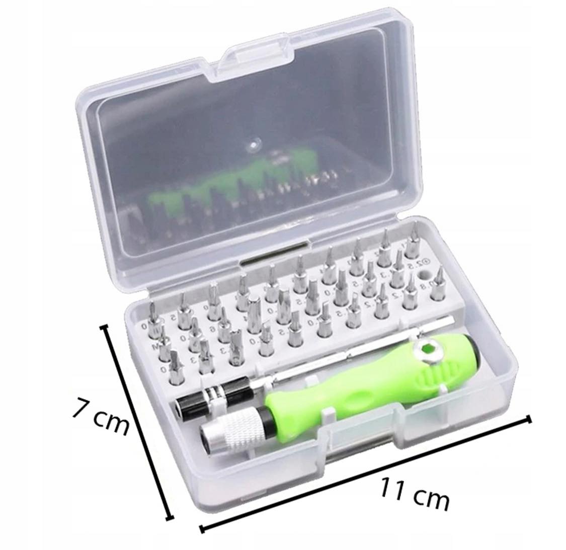 Ten bogaty zestaw końcówek z wygodnym uchwytem pokryty antypoślizgową powłoką wraz z długą przedłużką pozwoli Ci na nieograniczone możliwości użycia. W naszym zestawie znajdziesz wszystkie popularne końcówki bitów, między innymi: 5 x Philips, 5 x płaskie, Torx w rozmiarach od T4 do T10, Sześciokątne od H1.5 do H4.0, Y w rozmiarze 2.0 i 3.0, trójkątne 2.0 i 2.3, 3x Pentalobe oraz U 2.3 mm.