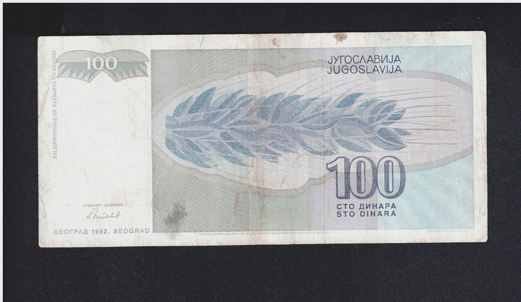 BANKNOT JUGOSŁAWIA - 100 DINARÓW - 1992 rok