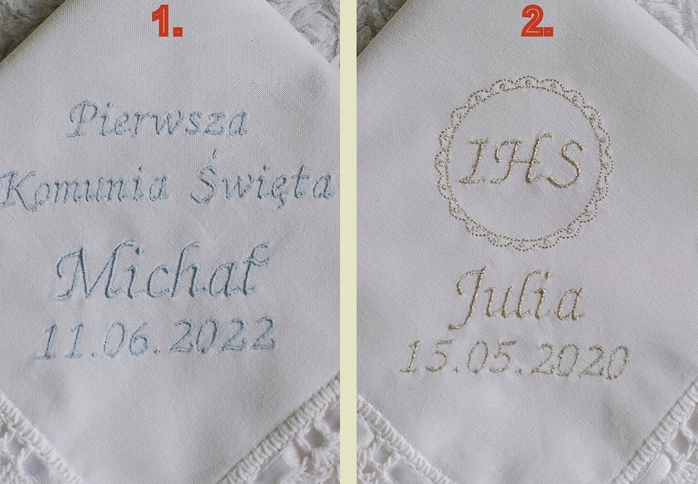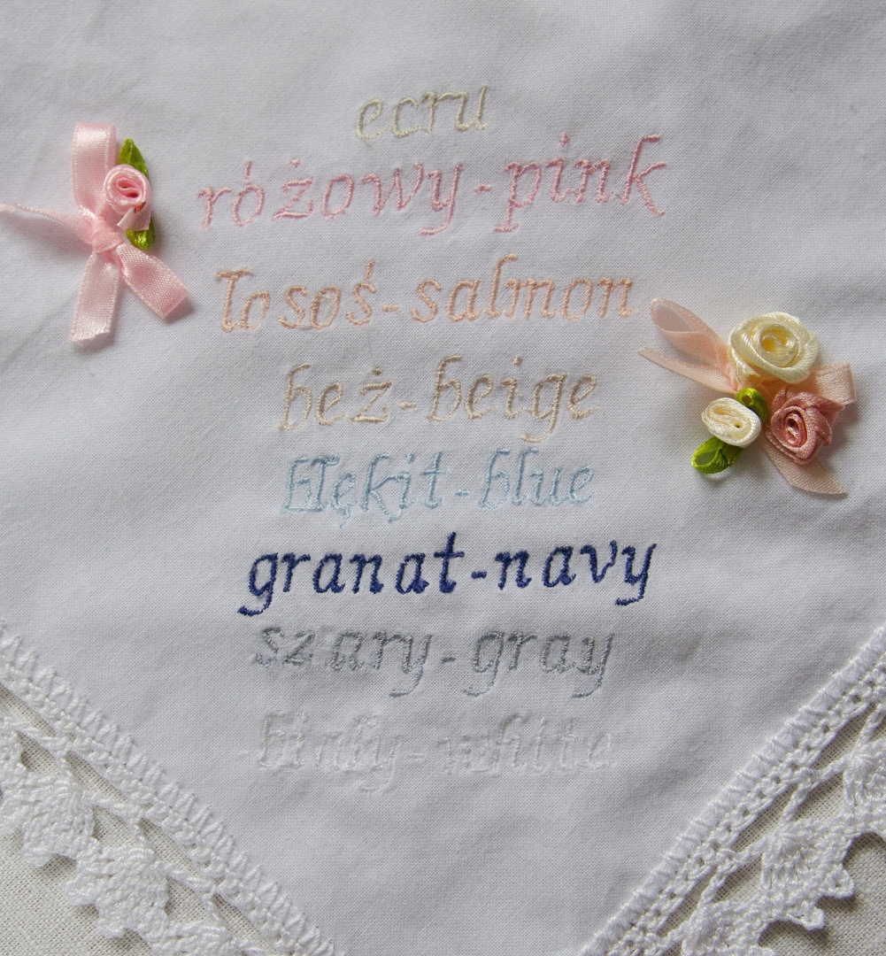 W przypadku nie określenia w zamówieniu koloru haftu, haft będzie wykonany w kolorze dopasowanym do modelu chusteczki!