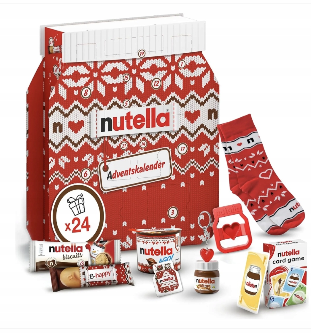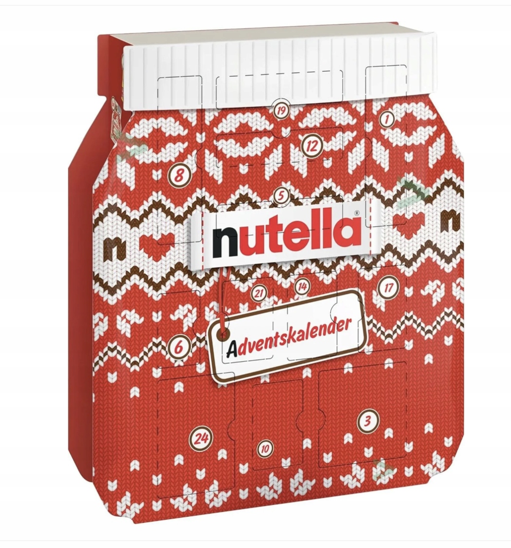 Prezentujemy wyjątkowy kalendarz adwentowy Nutella (528 g) z Niemiec. Wypełniony hitami od Ferrero — idealny dla fanów kremu orzechowo-kakaowego i małych przyjemności w każdy dzień adwentu.