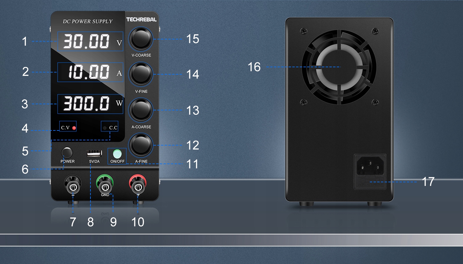 Techrebal SPS-C3010 to stabilizowany zasilacz laboratoryjny z płynną regulacją napięcia w zakresie od 0 do 30 V oraz prądu w zakresie od 0 do 10 A. Jego głównymi atutami są wysoka dokładność oraz czytelny wyświetlacz LCD. Zasilacz jest chłodzony cichym wentylatorem regulowanym temperaturą.