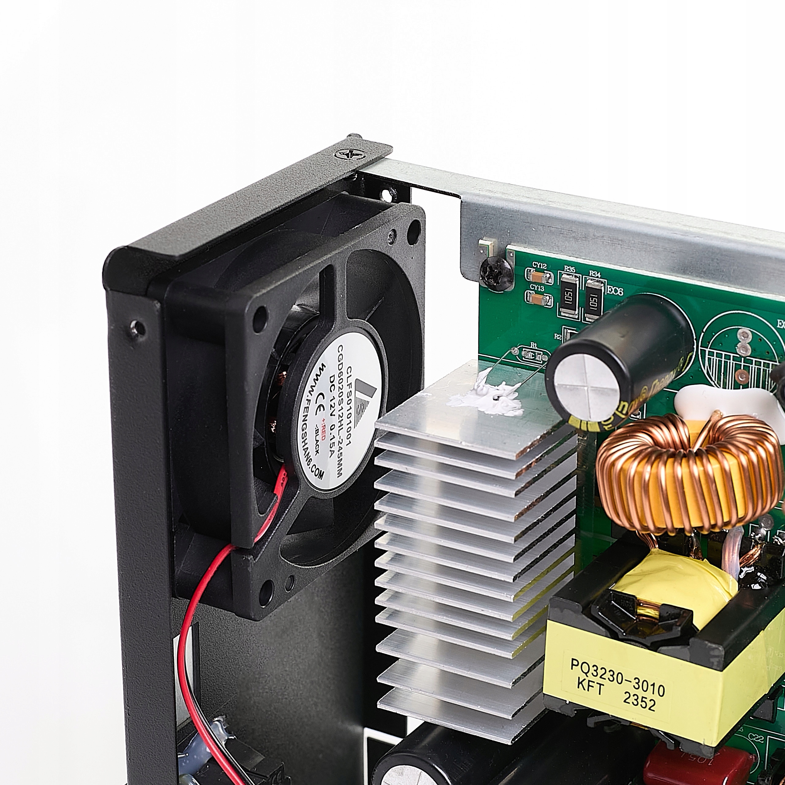 Marka Techrebal, dbając o bezpieczeństwo zarówno urządzenia, jak i użytkownika, wyposażyła zasilacz w zaawansowane zabezpieczenia przeciążeniowe i termiczne. Dodatkowo, zastosowano aktywne chłodzenie poprzez wbudowany wentylator, który automatycznie uruchamia się przy wzroście temperatury radiatora, szybko obniżając temperaturę wewnątrz urządzenia.