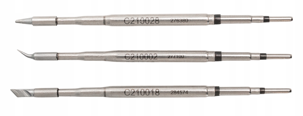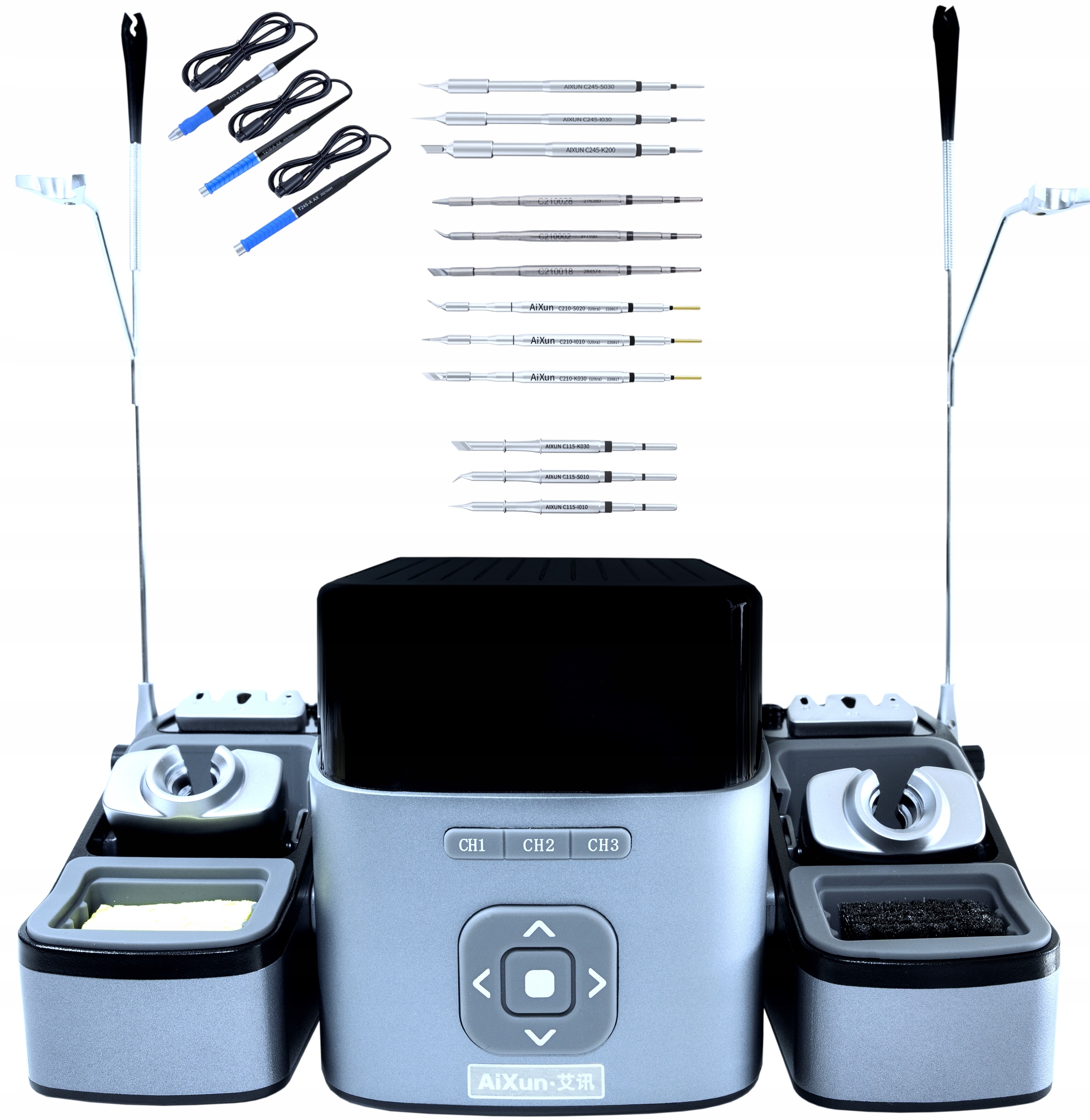 Stacja została wyposażona w trzy kolby lutownicze obsługujące różne typy grotów: