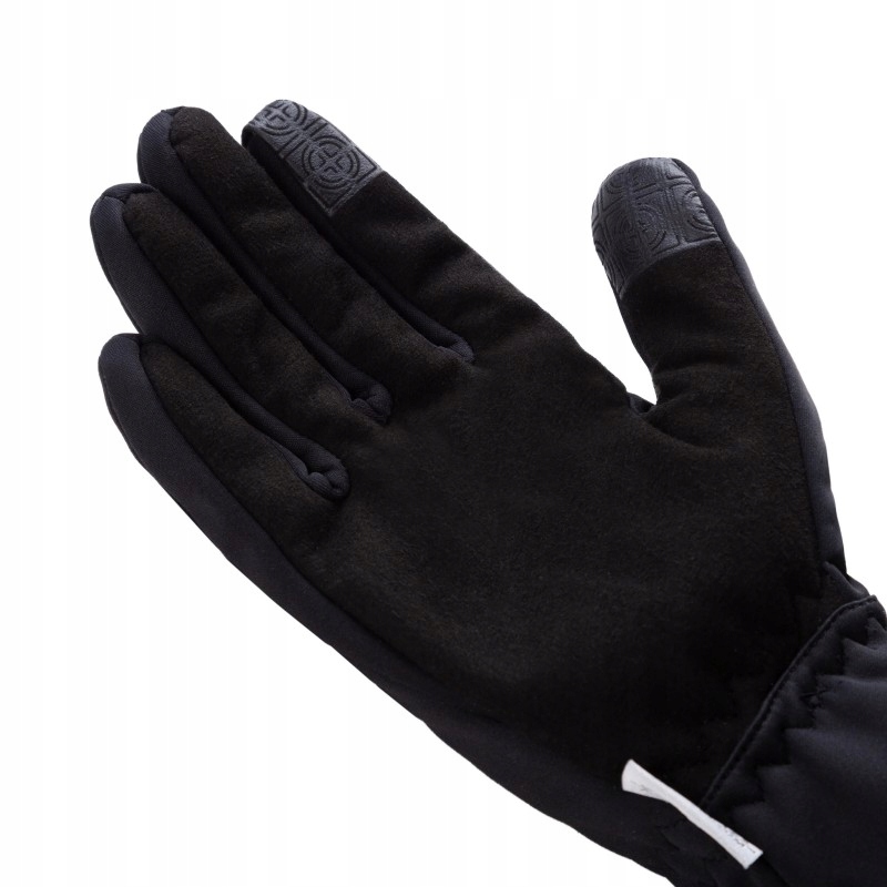 Na kciuku naszyty jest materiał, który pozwala na obsługę ekranów dotykowych. Konstrukcja od strony wnętrza dłoni jest specjalnie zaprojektowana bez szwu na wysokości kciuka, co zapewnia komfort (brak ucisku) w przypadku długiego trzymania kijków lub kierownicy roweru.