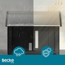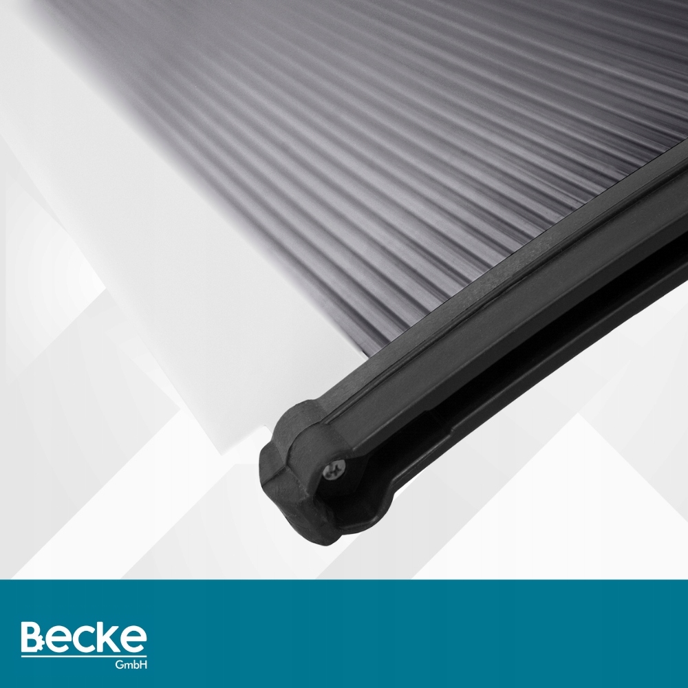 Daszek wykonany z polipropylenu, aluminium i poliwęglanu komorowego zapewnia doskonałe połączenie lekkości, odporności i trwałości. Wyróżnia się na tle konkurencyjnych produktów nowoczesnym designem i łatwością montażu. Grubość płyty 5 mm gwarantuje odporność na uderzenia i wpływ warunków atmosferycznych. Dodatkowo stabilizacja UV chroni powierzchnię przed żółknięciem i przebarwieniami.
