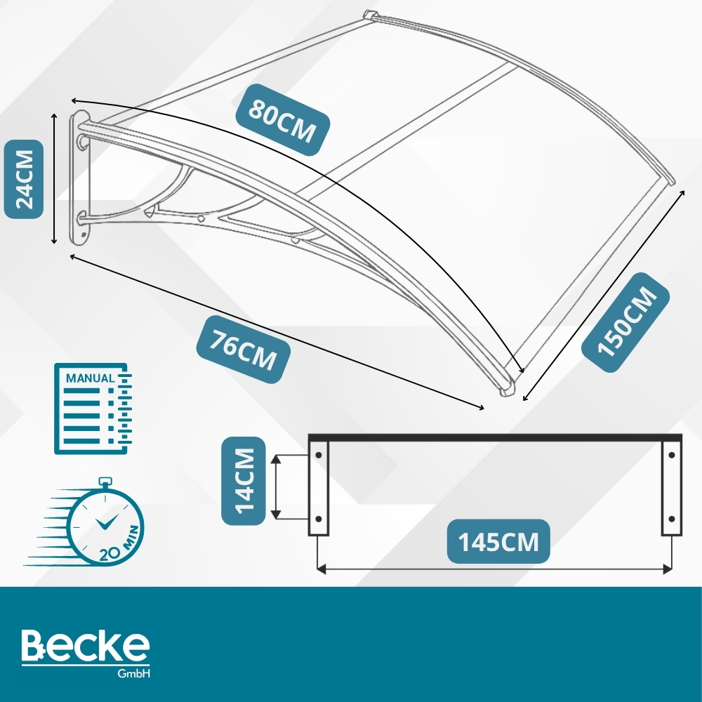 ☑️ Funkcjonalne i eleganckie zadaszenie łukowe zapewniające skuteczną ochronę przed deszczem, śniegiem i słońcem. Konstrukcja oparta na wytrzymałych materiałach, takich jak poliwęglan komorowy i aluminium, gwarantuje odporność na warunki atmosferyczne. Dzięki uniwersalnym wymiarom idealnie nadaje się do montażu nad drzwiami wejściowymi, oknami czy balkonem. Idealnie sprawdzi się również do ochrony bankomatów, witryn sklepowych, czy też wejść do klatek schodowych.