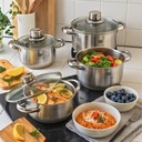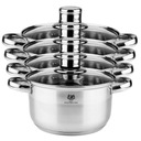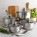 Zestaw garnków ZELDA charakteryzuje się eleganckim połyskiem wykończeniem wewnątrz, który doskonale komponuje się z każdym wnętrzem kuchennym. Nasz zestaw czyni go idealnym do przygotowywania małych, jak i dużych porcji. Zapewnia optymalne wykorzystanie energii i równomierne gotowanie.