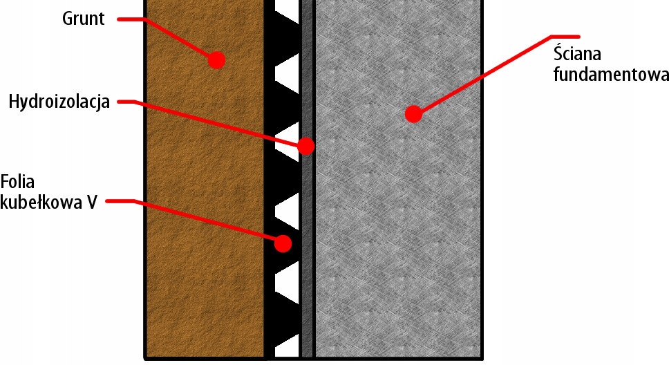 Folia kubełkowa jest używana do zabezpieczenia hydroizolacji zewnętrznej ścian, fundamentów, tarasów, stropów, stropodachów.
