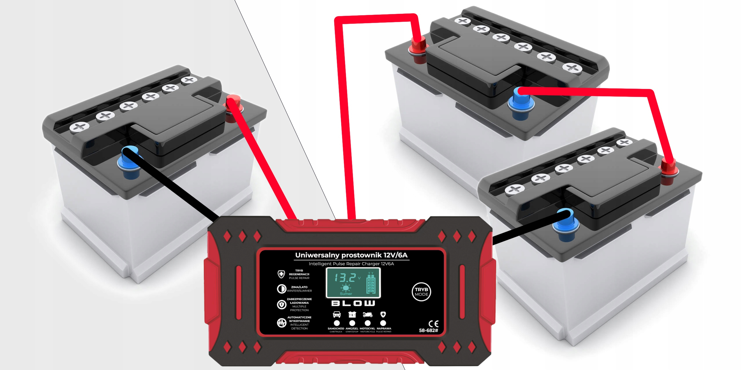Zwróć uwagę, że ten prezentowany akumulator generuje natężenie prądu nawet do 6A, gwarantuje to szybkie naładowanie każdego akumulatora 12V.