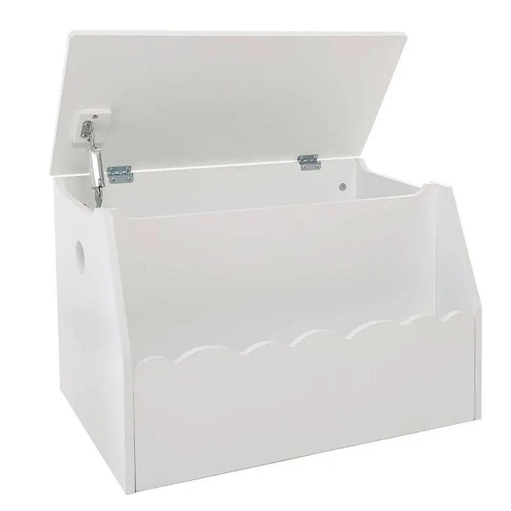 Regał dla dzieci ze schowkiem na zabawki, biały. Dziecięcy pokój to miejsce przeznaczone nie tylko do snu i wypoczynku, ale także nauki i zabawy. Szczególnie ważny jest wybór właściwych mebli oraz dodatków, aby wprowadzić do niego odpowiedni klimat. Wytrzymałe, wygodne i kolorowe: takie właśnie powinny być meble przeznaczone do dekoracji pokoju dziecięcego. Nie musisz szukać daleko! Wystarczy, że sprawdzisz nasz asortyment, gdzie znajdziesz szeroki wybór mebelków, którymi urządzisz pokój swojego dziecka.