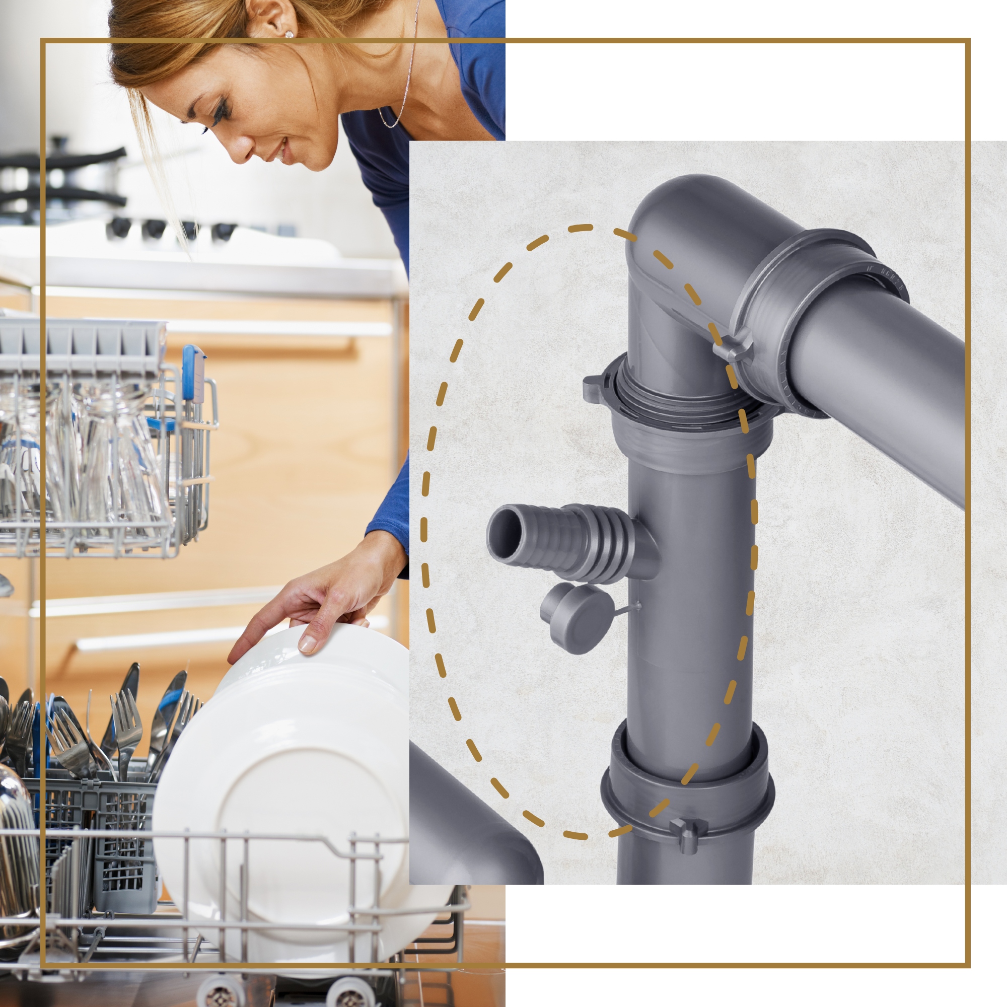 Dodatkowe odprowadzenie pozwala na łatwe podłączenie zmywarki lub pralki.