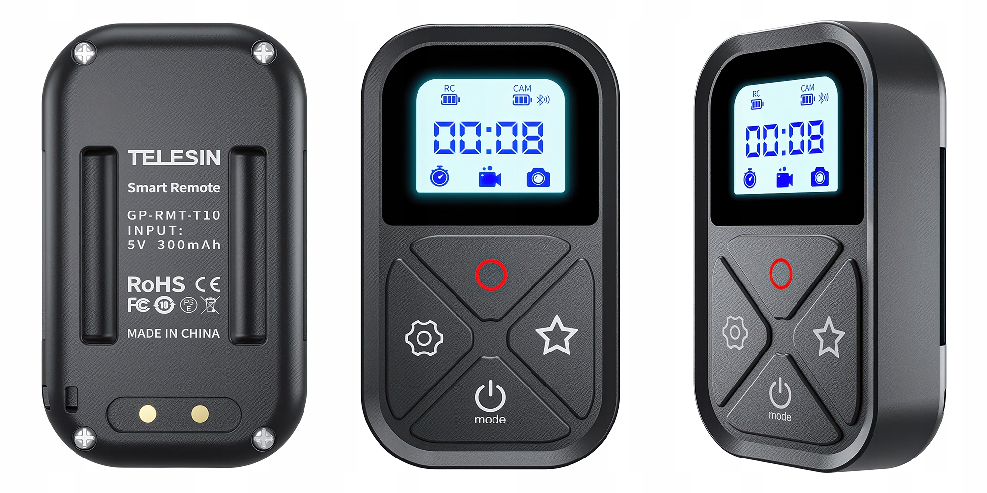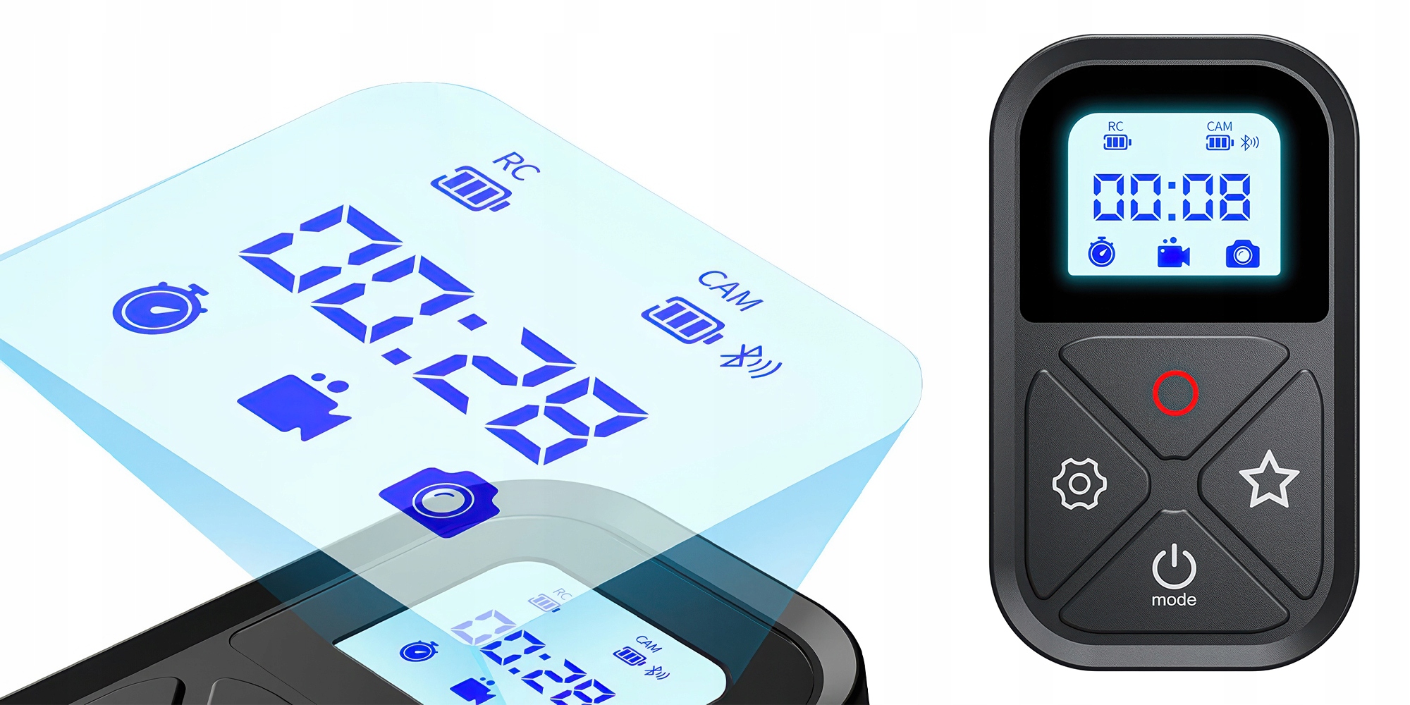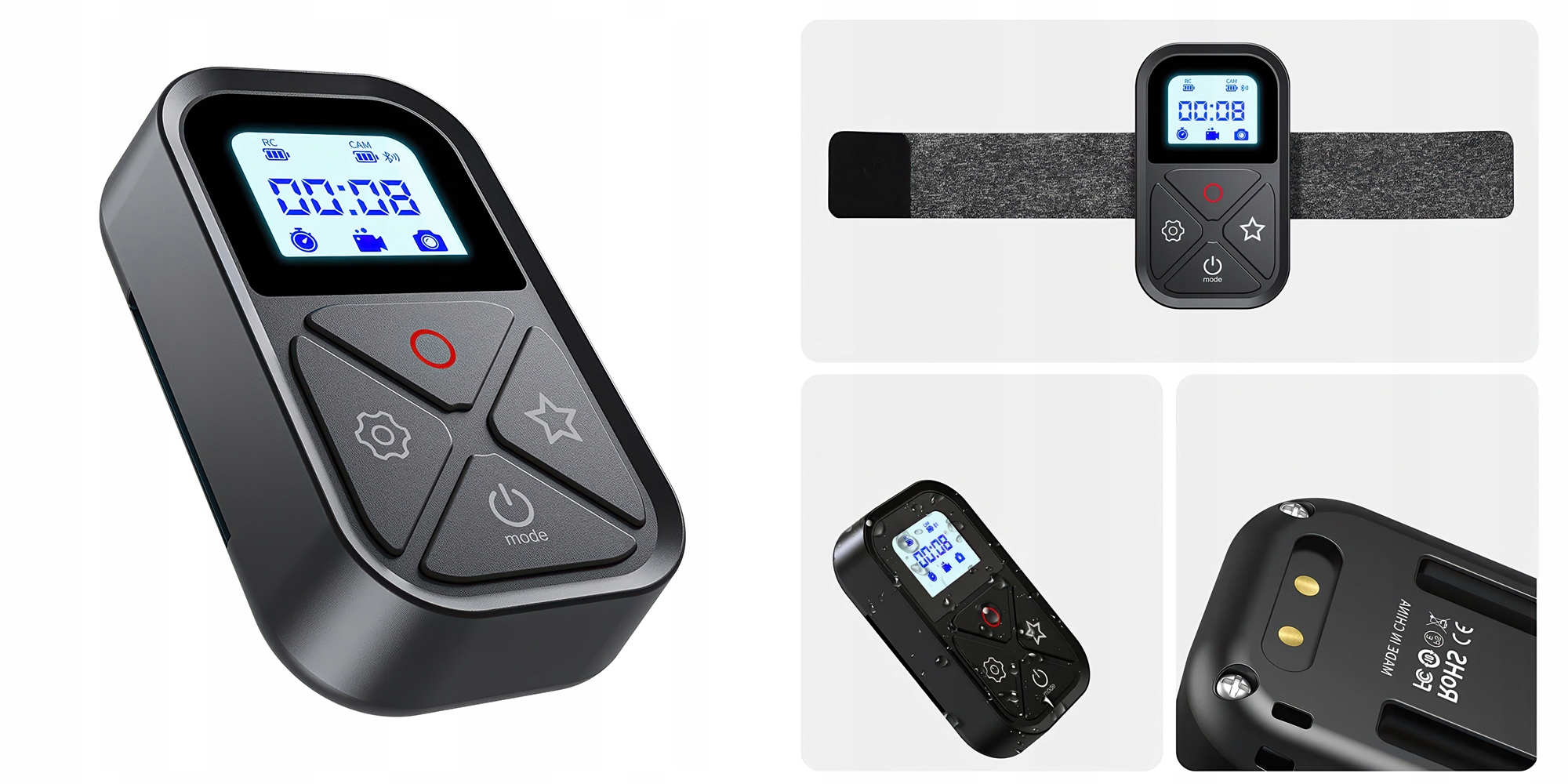 Wbudowany wyświetlacz LED pokazuje wszystkie kluczowe informacje: tryb pracy kamery (video, zdjęcie, timelapse), czas nagrywania, poziom naładowania (zarówno pilota, jak i kamery), a także liczbę zarejestrowanych plików. Ekran pilota Telesin GP-RMT-T10 jest czytelny nawet w pełnym słońcu, co pozwala błyskawicznie sprawdzić status nagrywania bez konieczności sięgania po kamerę. To duże ułatwienie w dynamicznych sytuacjach zdjęciowych, gdy zależy Ci na czasie i lepszym komforcie pracy.