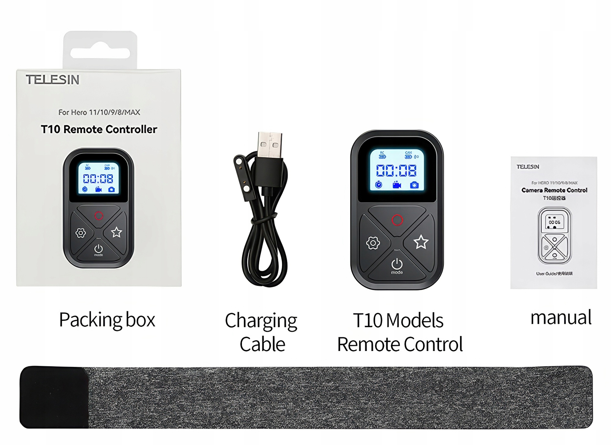 Telesin GP-RMT-T10 to pilot Bluetooth stworzony z myślą o bezprzewodowej kontroli kamer sportowych GoPro Hero (od wersji 8 do 12) oraz GoPro Max. Umożliwia zdalne sterowanie aż pięcioma urządzeniami jednocześnie, z odległości do 80 metrów. Wyposażony w cztery intuicyjne przyciski oraz czytelny ekran LED, pozwala na szybką zmianę trybów, ustawień i rozpoczęcie nagrywania. Dzięki technologii oszczędzania energii działa do 10 godzin na jednym ładowaniu. W zestawie znajdziesz wygodny pasek umożliwiający noszenie pilota na nadgarstku – zupełnie jak zegarka. To niezawodne narzędzie dla twórców, którzy chcą mieć pełną kontrolę nad swoją kamerą GoPro, gdy ta nie znajduje się w zasięgu ręki.