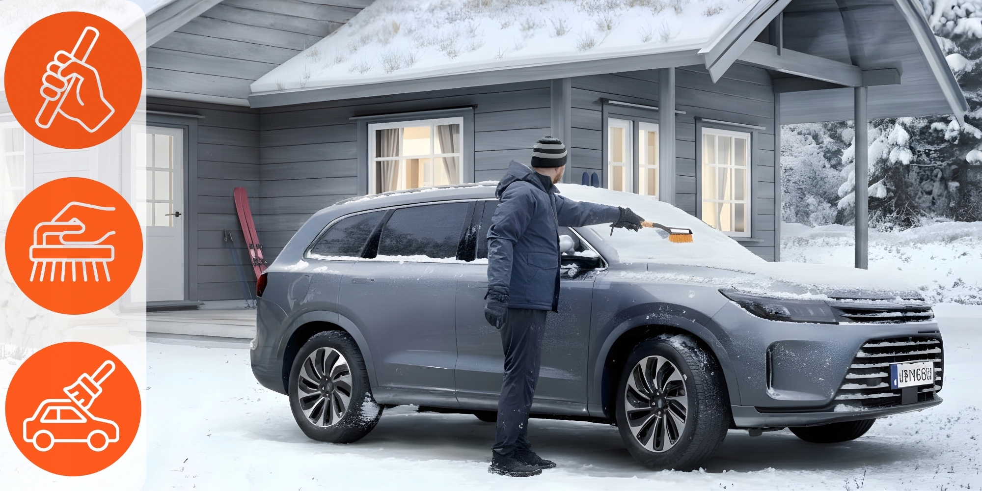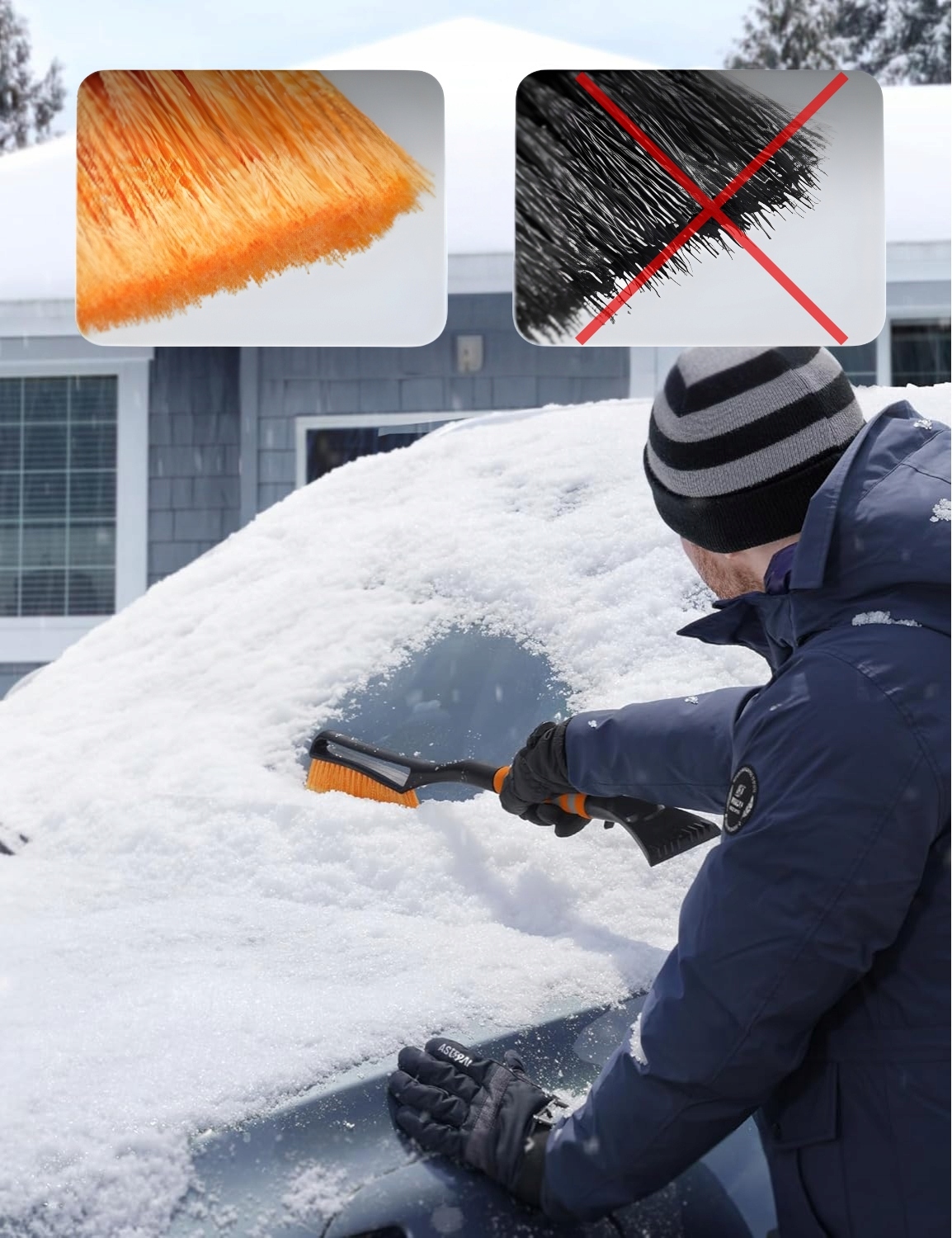 Miękkie włosie nie rysuje lakieru, a mocna skrobaczka z łatwością usuwa lód nawet przy dużych mrozach.