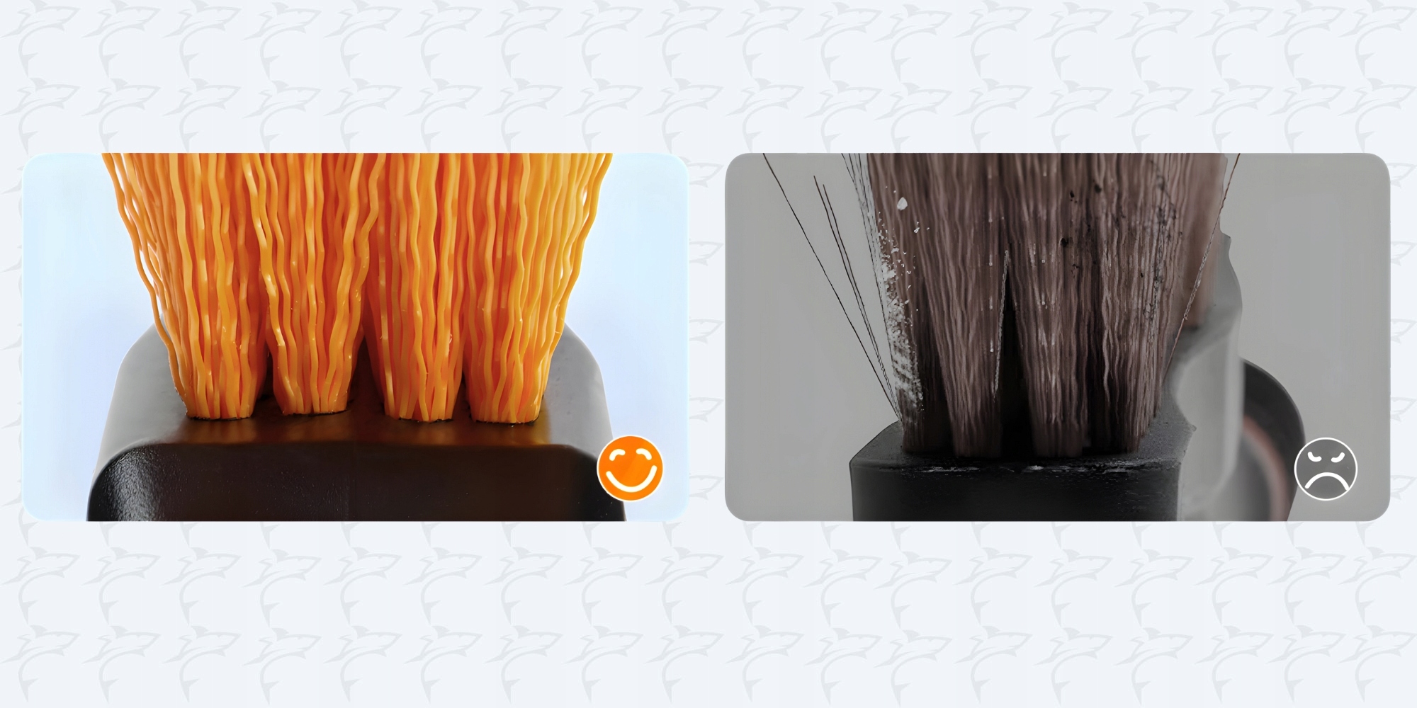 Specjalna struktura i sprężystość włókien gwarantują równomierne zgarnianie oraz długą żywotność – włosie nie odkształca się i nie kruszy po kilku użyciach.