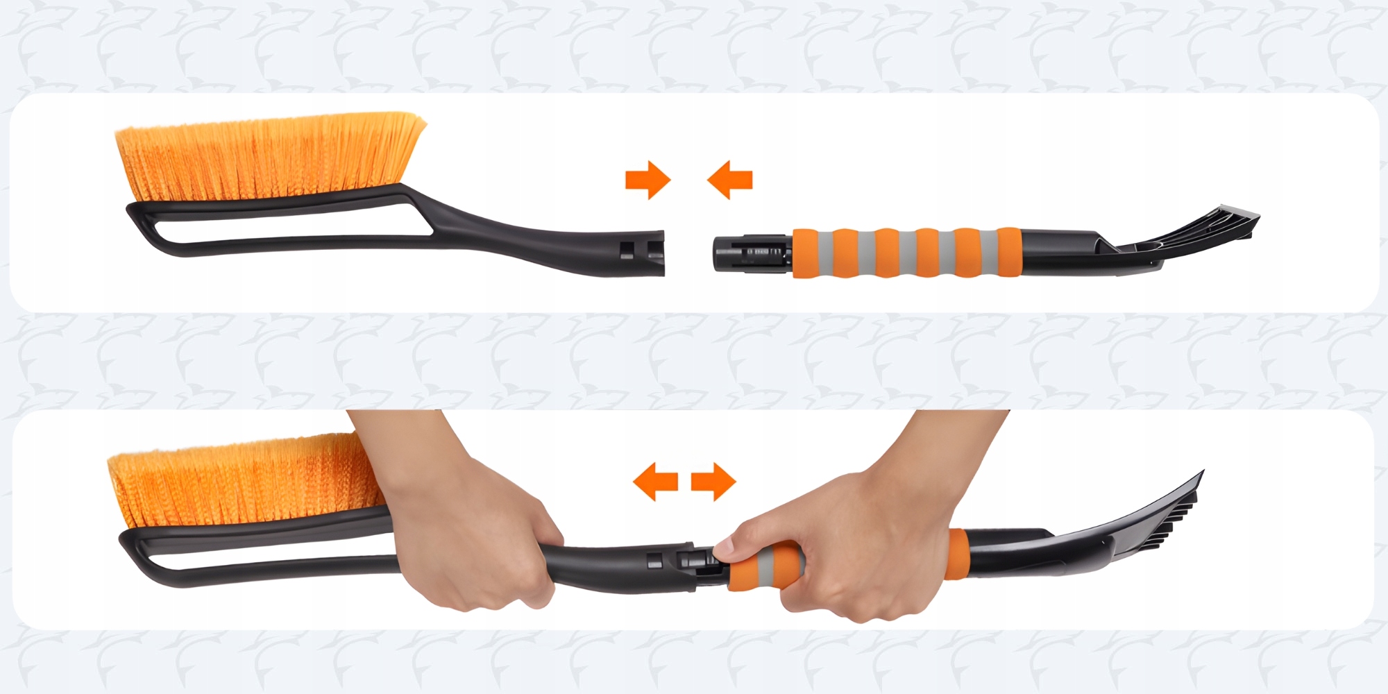 System klik-lock pozwala w kilka sekund połączyć lub rozdzielić szczotkę i skrobaczkę.