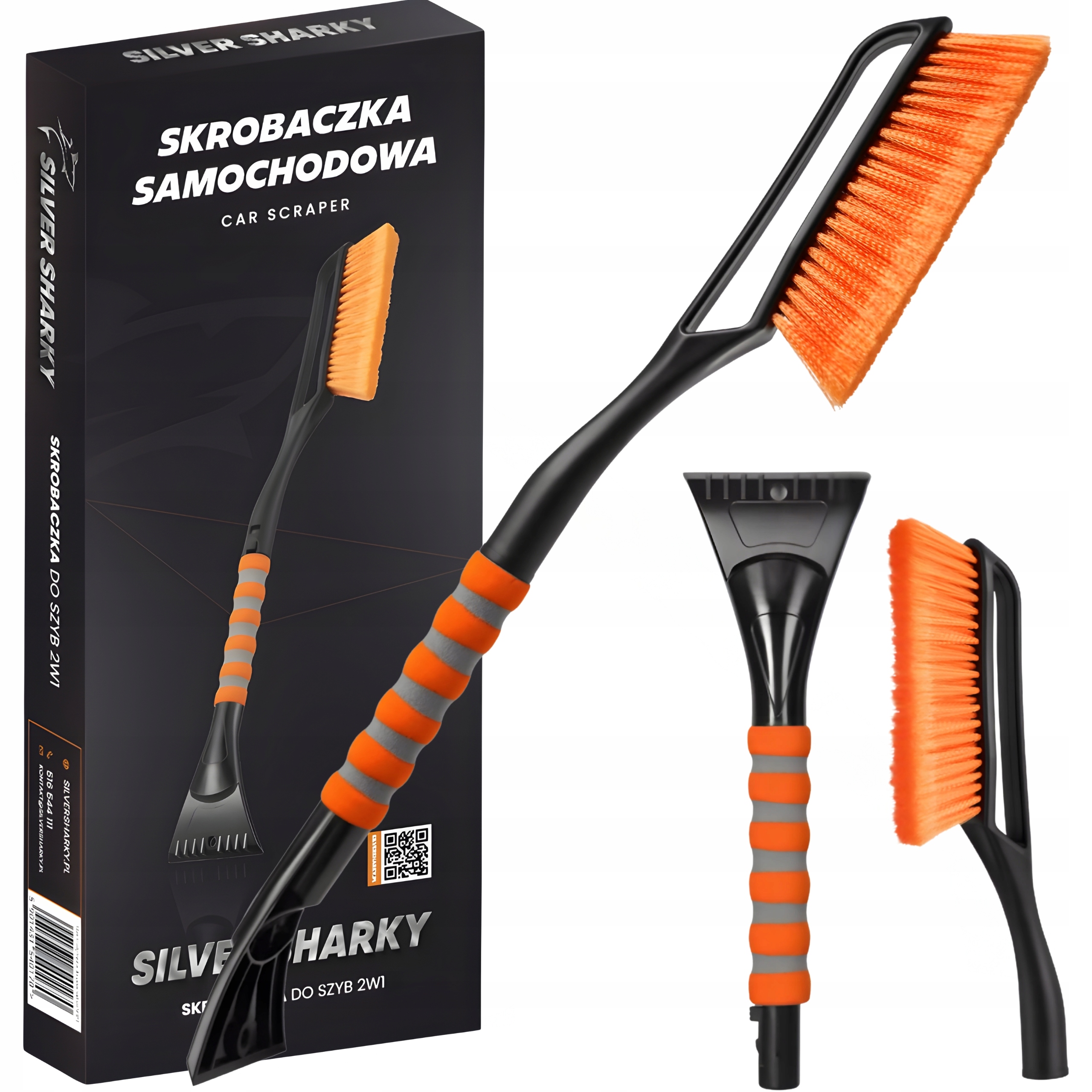 Szczotka i skrobaczka SILVER SHARKY pozwalają szybko i wygodnie oczyścić samochód z każdej strony — dach, szyby, lusterka, maska czy drzwi.