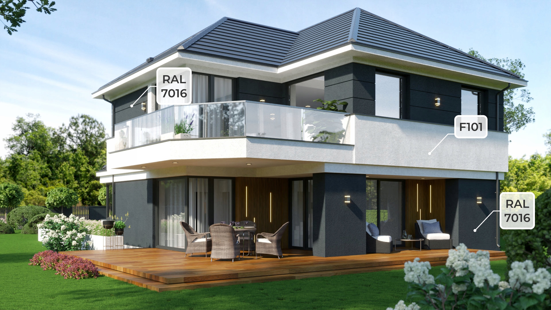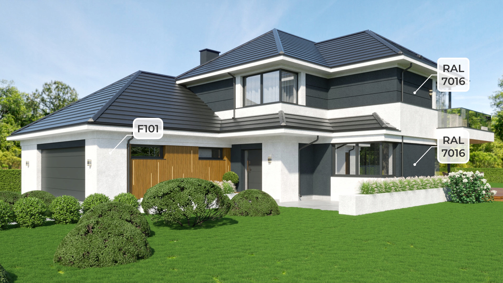 W komplecie proponujemy zakup tynku silikonowego w kolorze ANTRACYT 7016: