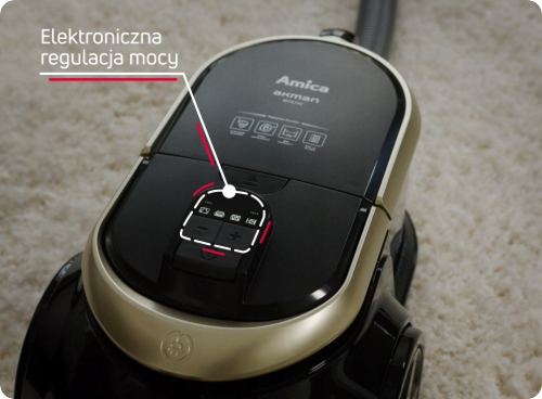 Zbyt małe ssanie lub zbyt duży pobór mocy wobec Twoich potrzeb? Łatwo dostosuj moc ssania odkurzacza do rodzaju czyszczonej powierzchni! Elektroniczna regulacja mocy pozwoli Ci nie tylko sprawniej i skuteczniej odkurzać różnego rodzaju podłoża, ale też oszczędzić na rachunkach za energię!