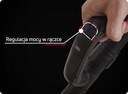 Koniec ze schylaniem się, by ustawić moc odkurzacza. Przyciski znajdujące się w rączce pozwalają na komfortowe włączanie, wyłączanie i regulowanie mocy odkurzania. Regulacja mocy w uchwycie umożliwia szybką reakcję jeśli tylko wciągniemy odkurzaczem zabawkę dziecka lub zasłonę.