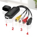 Для захвата аналогового видео устройство необходимо подключить к USB-порту компьютера и к устройству воспроизведения-видео, камерам и т. д. Разъемы от 1 до 4 подключаем соответственно к входам: