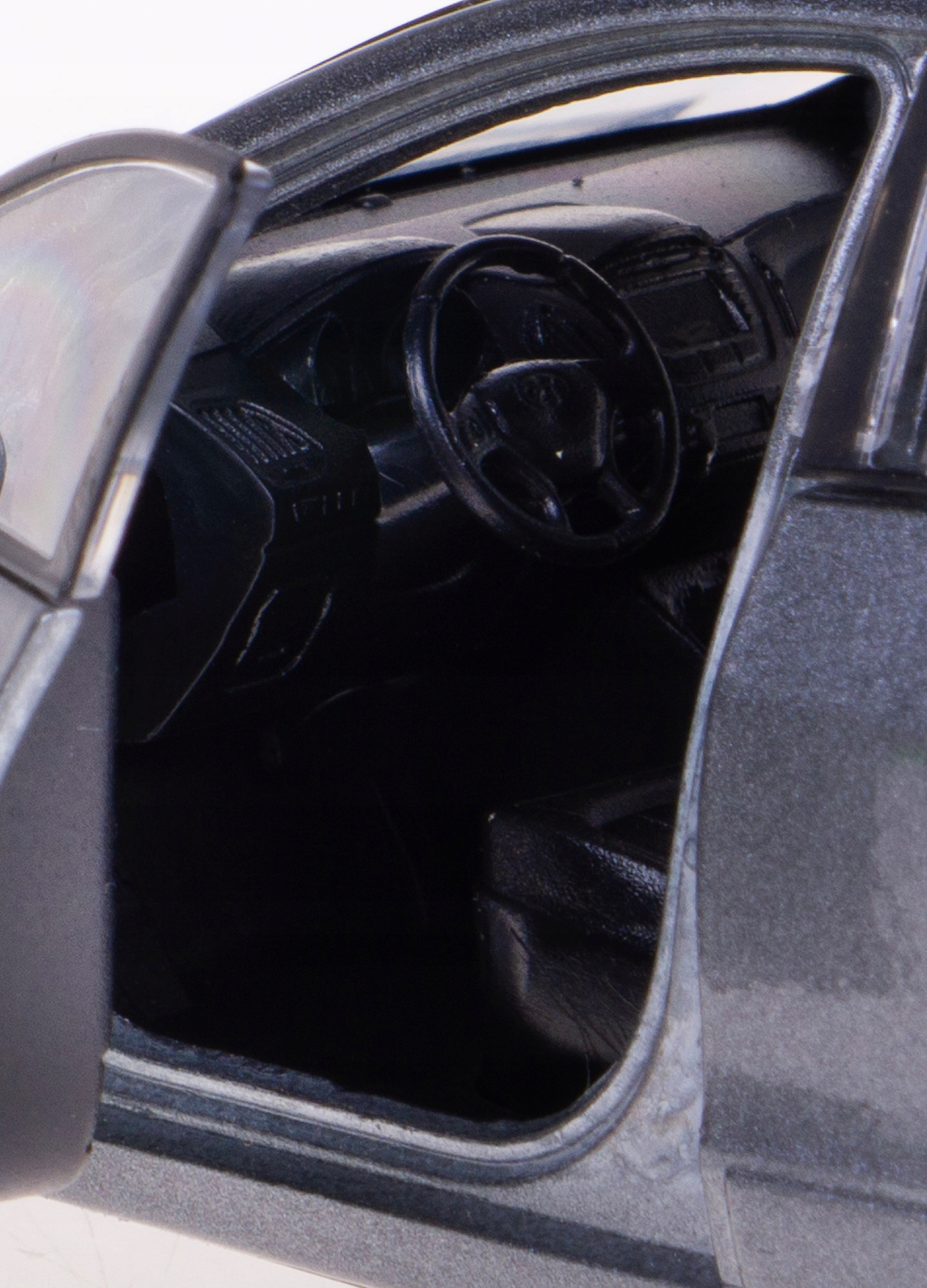 Модель изготовлена из металл с добавлением пластика. Имеет открывающиеся двери и резиновые шины.