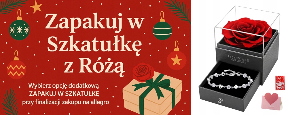 ☑️ Oferujemy możliwość zapakowania w specjalną ekskluzywną szkatułkę prezentową z Wieczną różą wykonana z prawdziwego kwiatu. W przypadku chęci otrzymania szkatułki z różą, prosimy o wybranie podczas zamówienia opcji dodatkowej "Zapakuj w szkatułkę z różą". Jest to opcja dodatkowo płatna.