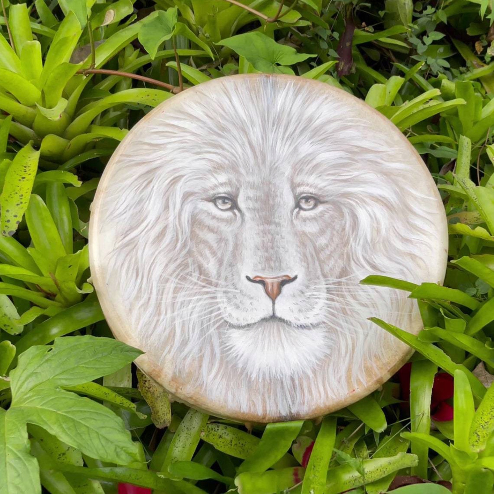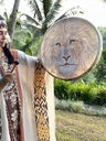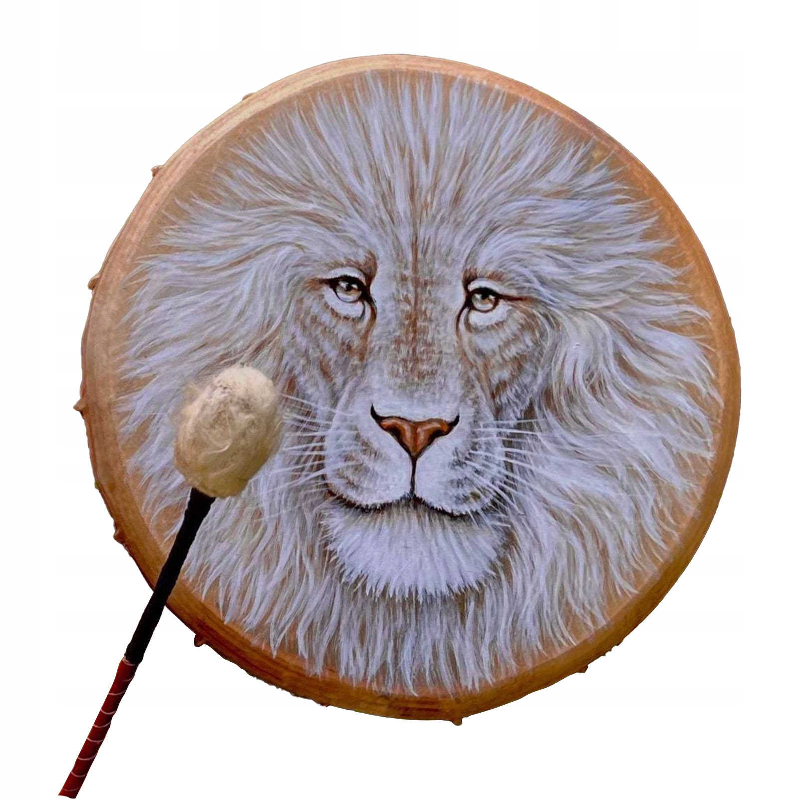 BĘBEN SZAMAŃSKI INSTRUMENT PERKUSYJNY Z WZÓR LWA. BĘBEN SZAMAŃSKI NA LECZENIE DUCHOWE Z WZÓR LWA